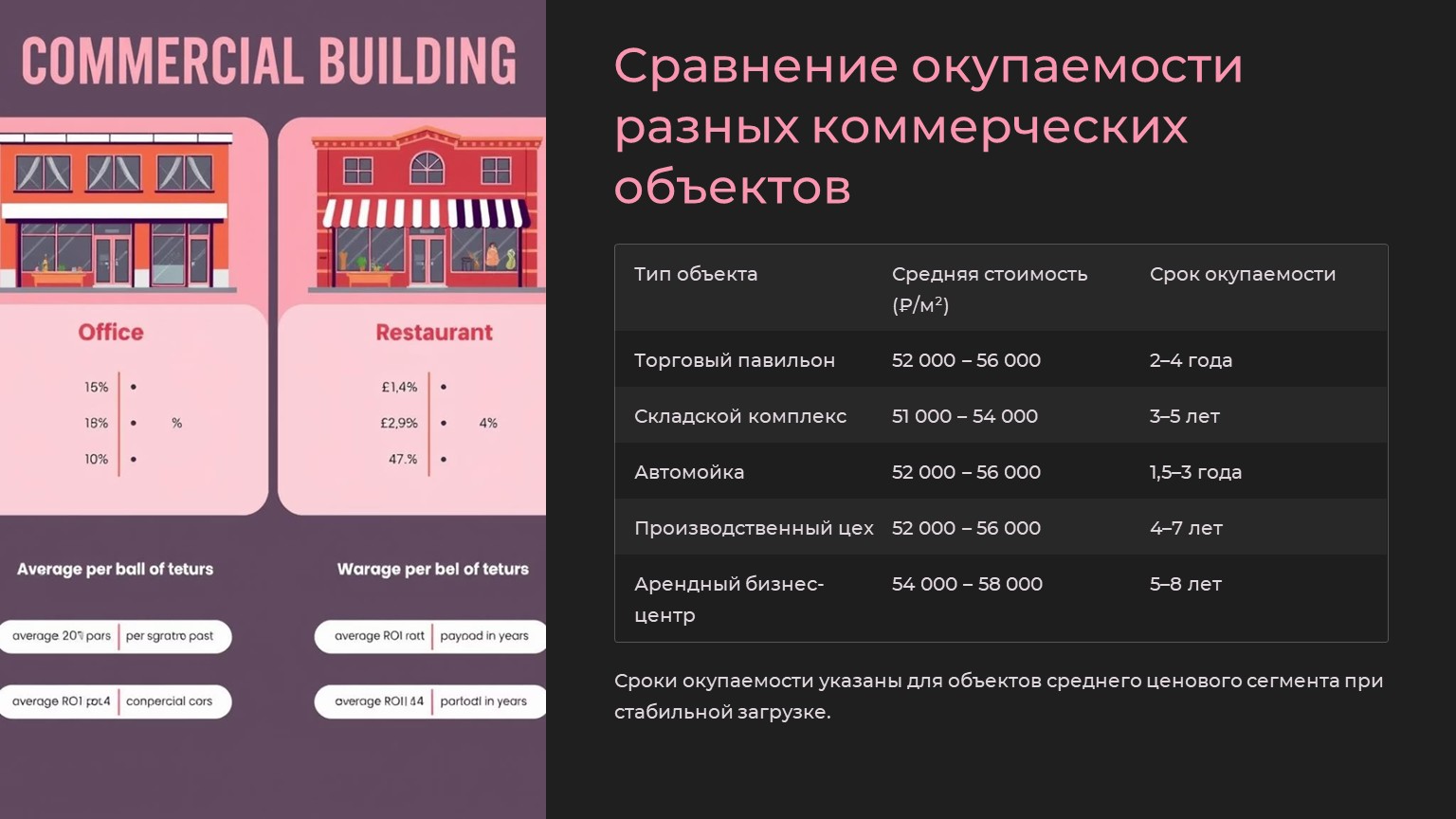 Сравнение окупаемости разных типов коммерческих объектов