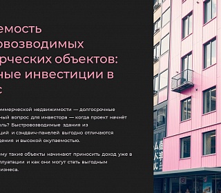 Быстровозводимые коммерческие объекты – это одни из самых выгодных инвестиций в недвижимость. Они сочетают: