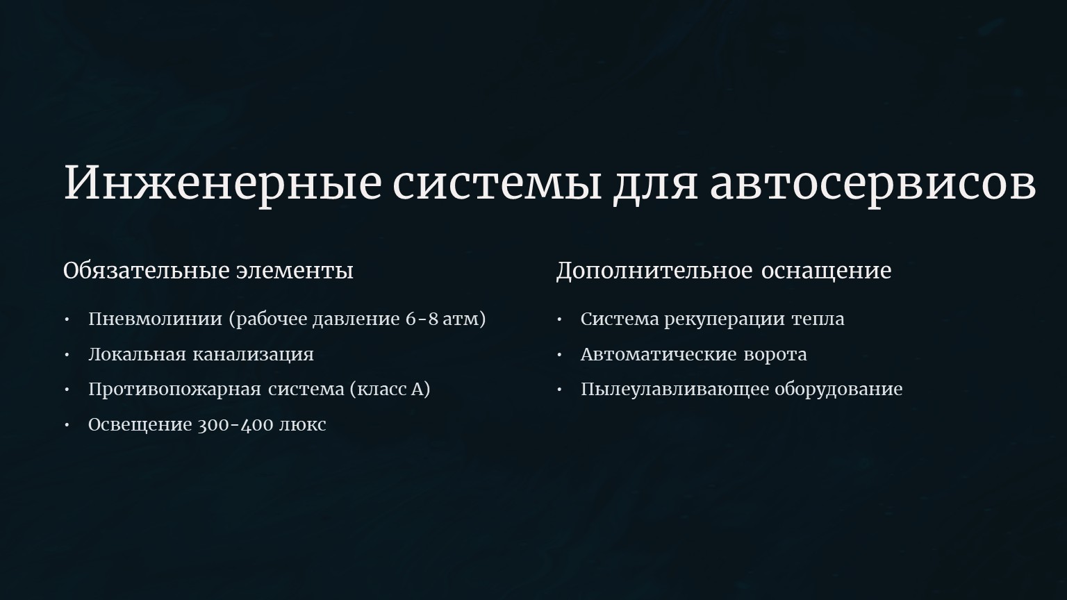 4. Инженерные системы для автосервисов
