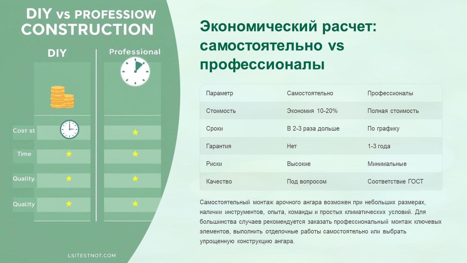 Полное руководство по самостоятельному монтажу арочного ангара: пошаговая инструкция, необходимые инструменты, оценка рисков и альтернативные варианты.