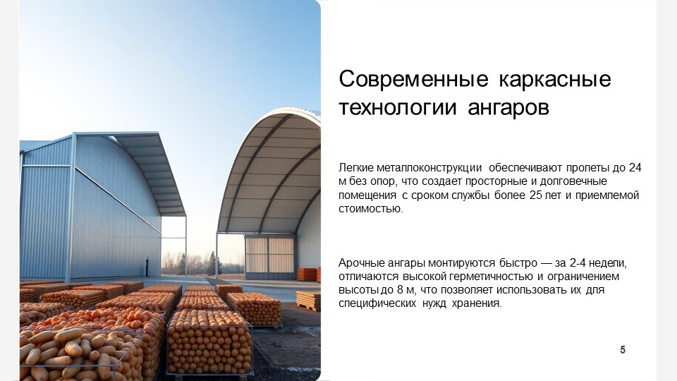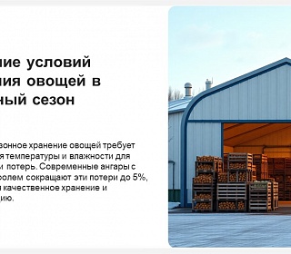 Современные ангары для хранения овощей — это высокотехнологичные комплексы, позволяющие: