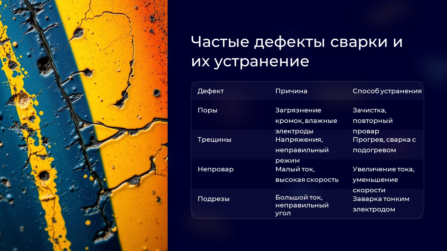 ✔ Отсутствие дефектов (поры, трещины, непровары)