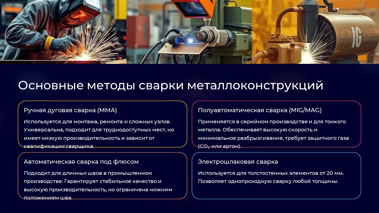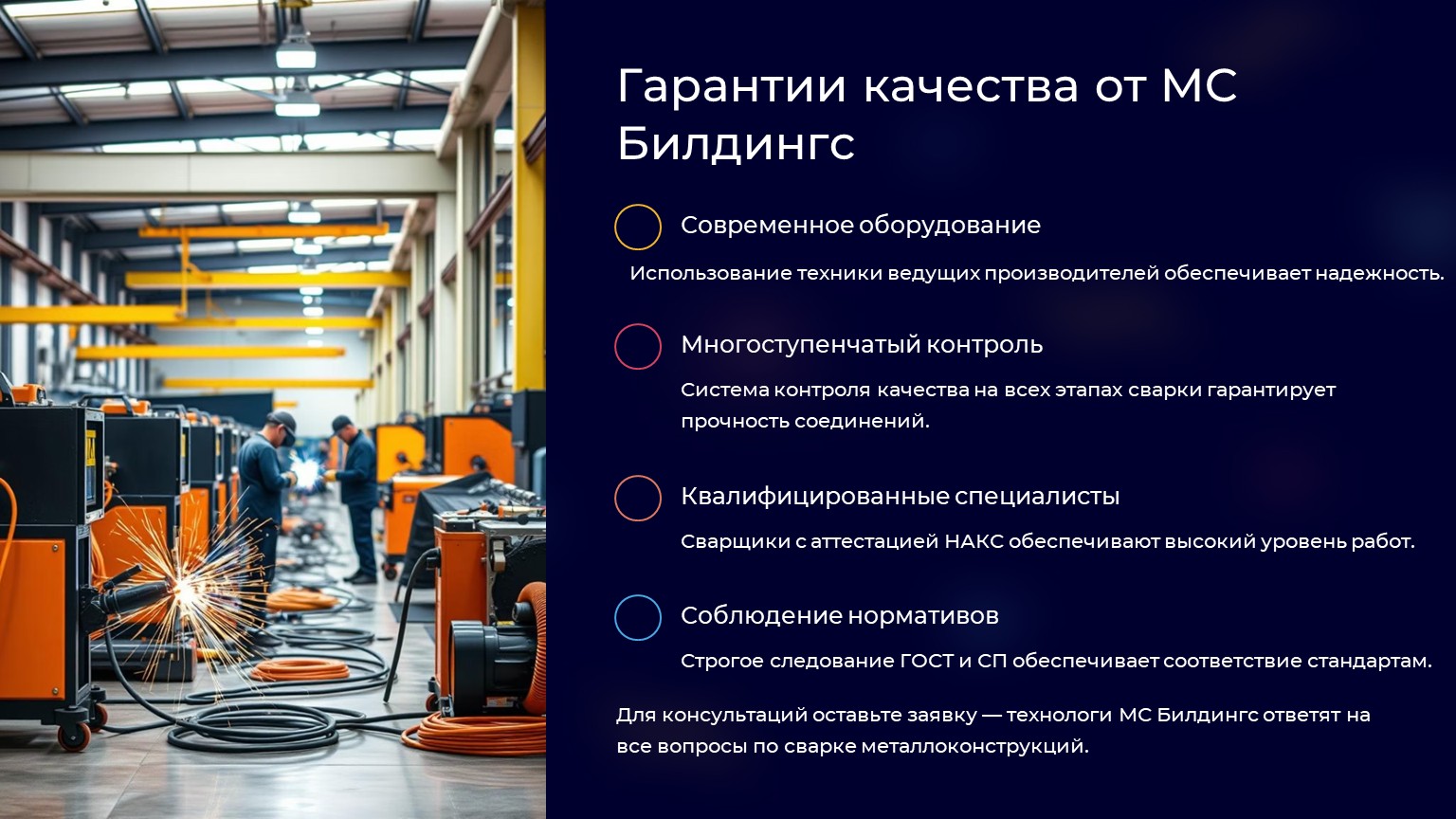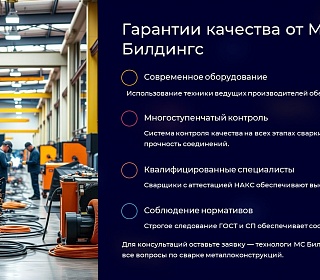 Полное руководство по сварке металлоконструкций: современные методы, требования ГОСТ, система контроля качества и практические рекомендации от специалистов МС Билдингс.