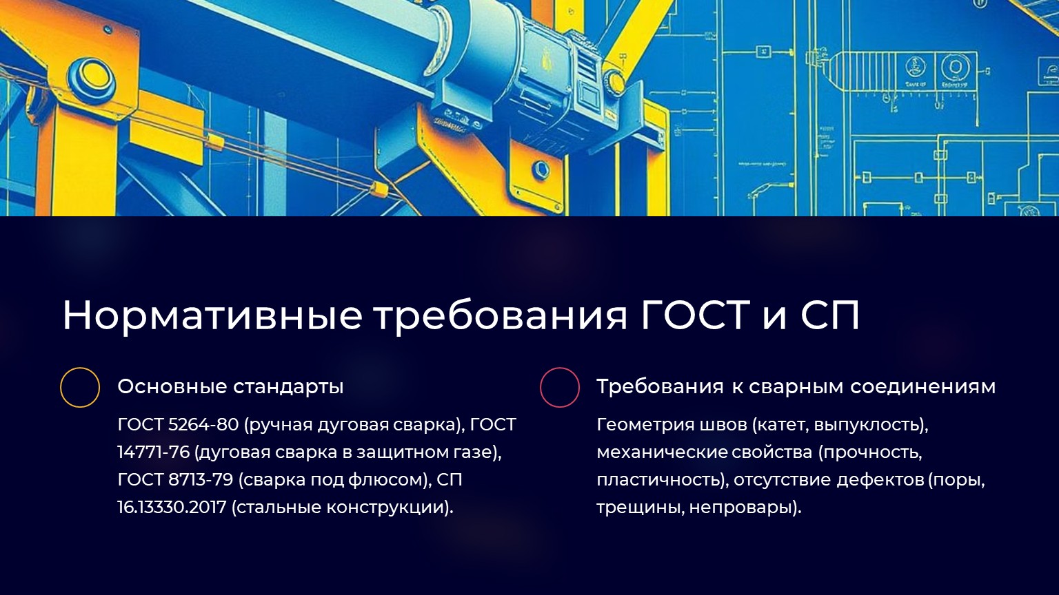 Сварка - один из ключевых процессов при изготовлении металлоконструкций, от которого напрямую зависит их прочность, надежность и долговечность. В этой статье мы подробно разберем современные методы сварки, нормативные требования ГОСТ и систему контроля качества, применяемую в промышленном строительстве.