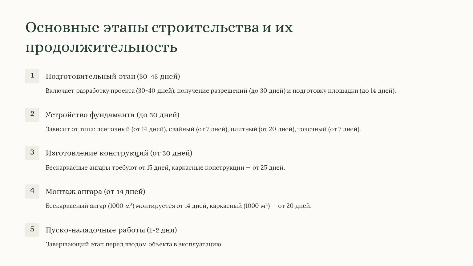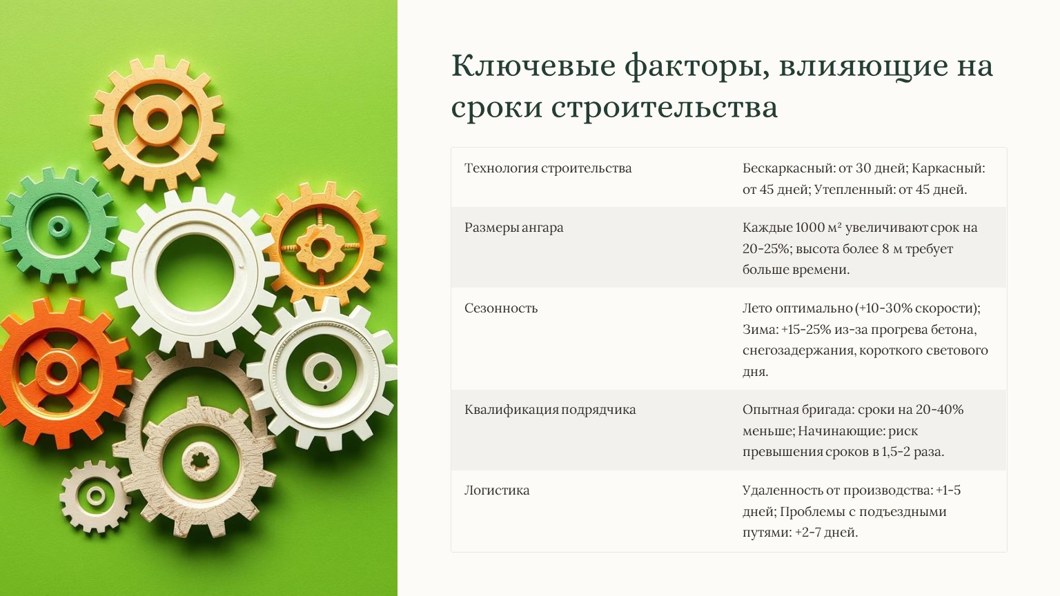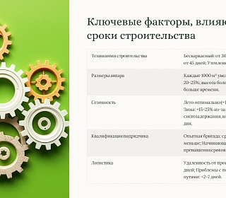 Полный анализ факторов, влияющих на сроки строительства арочного ангара. Таблицы продолжительности работ для разных типов конструкций и способы оптимизации процесса.
