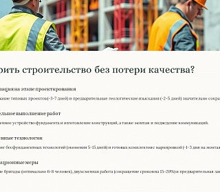 - Двухсменная работа (сокращение сроков на 15-20%)
