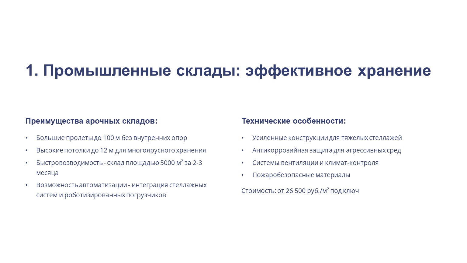 ✔ Быстровозводимость - склад площадью 5000 м² за 2-3 месяца