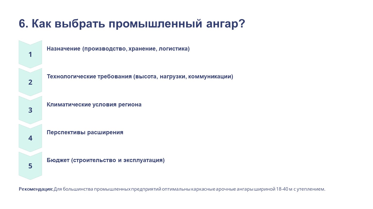 Рекомендация: Для большинства промышленных предприятий оптимальны каркасные арочные ангары шириной 18-40 м с утеплением.