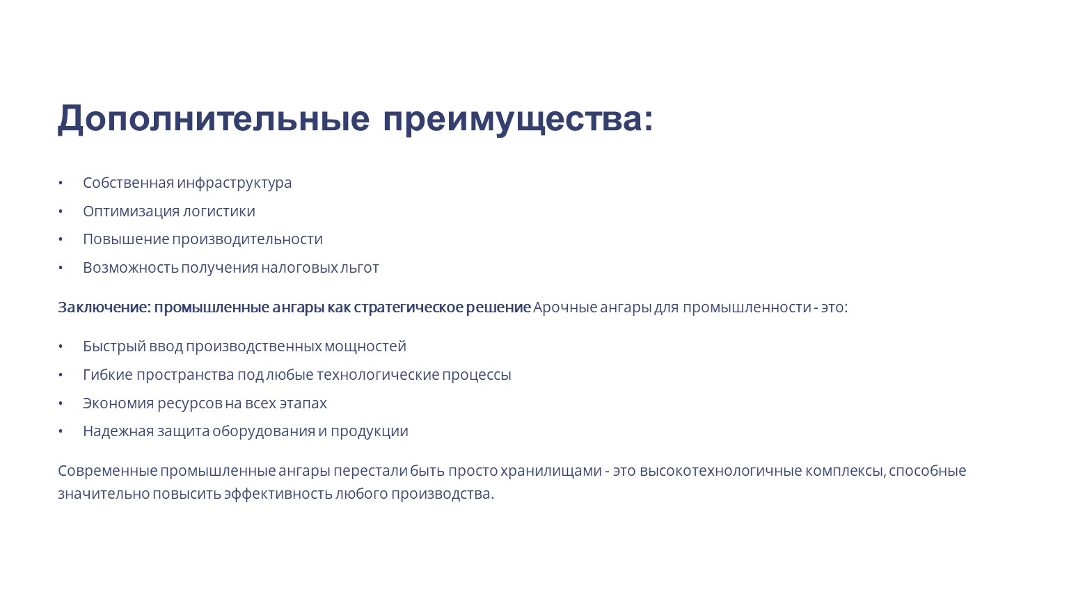 Заключение: промышленные ангары как стратегическое решение