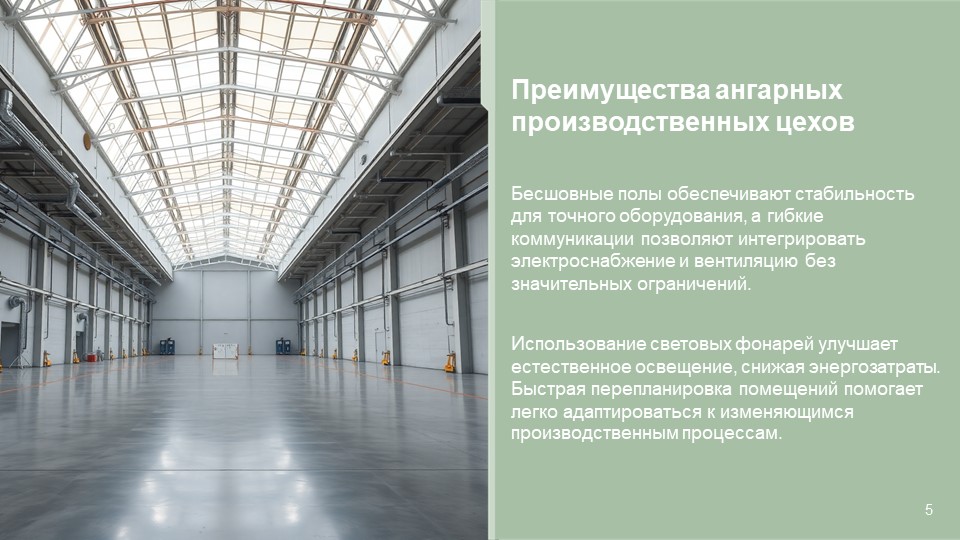 Современные промышленные ангары кардинально отличаются от традиционных "железных коробок". Сегодня это высокотехнологичные сооружения, которые позволяют: