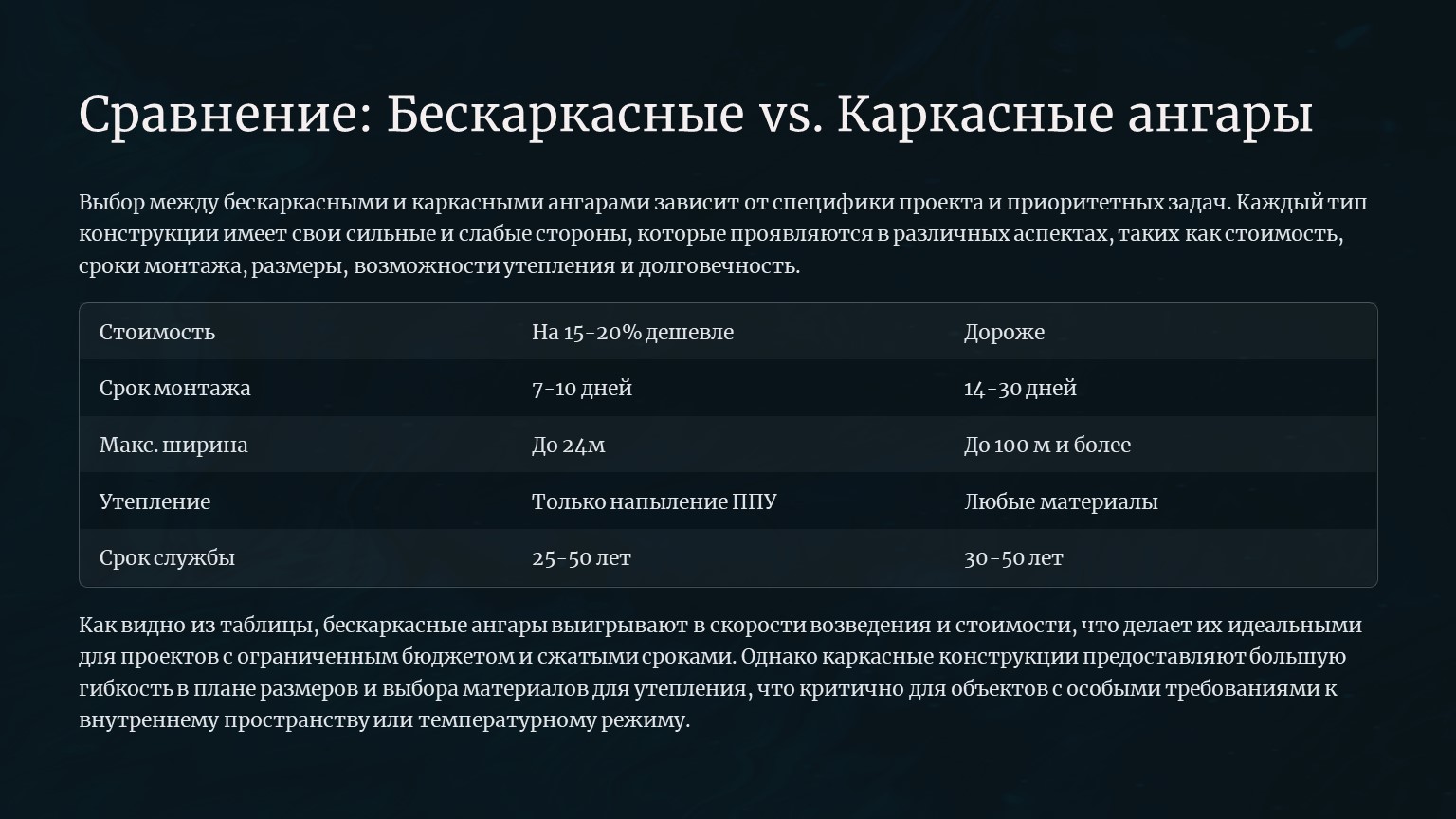 ????️ Сравнение с каркасными ангарами