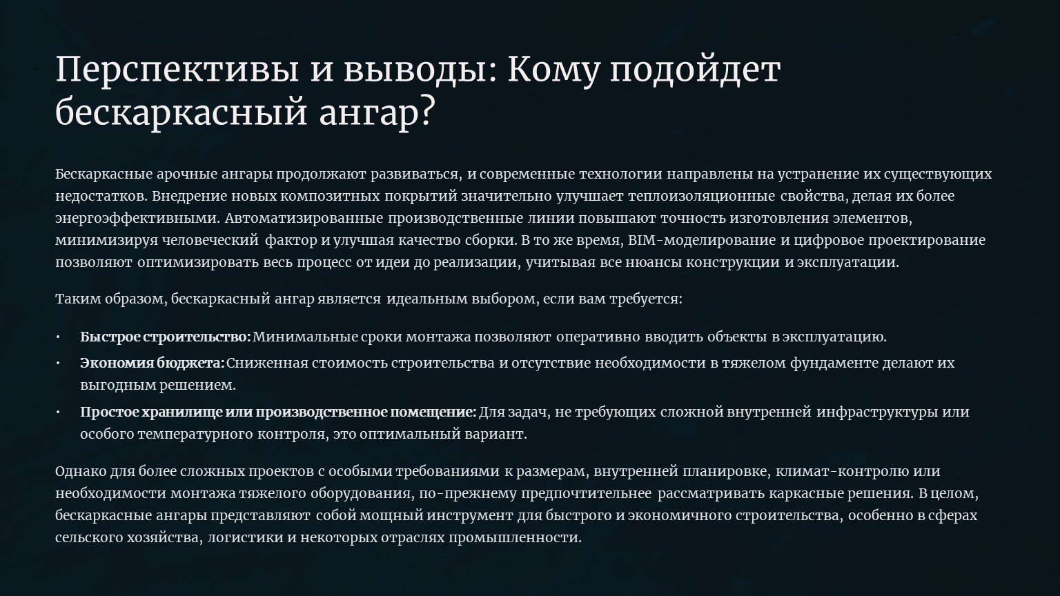 ???? Вывод: кому подойдёт бескаркасный ангар?