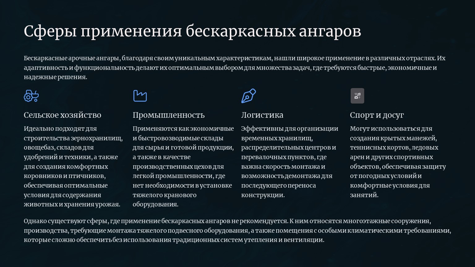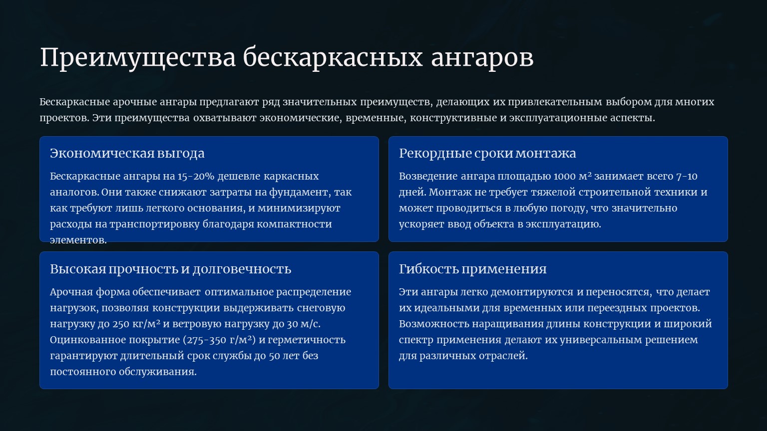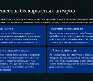 ✅ Преимущества бескаркасных ангаров