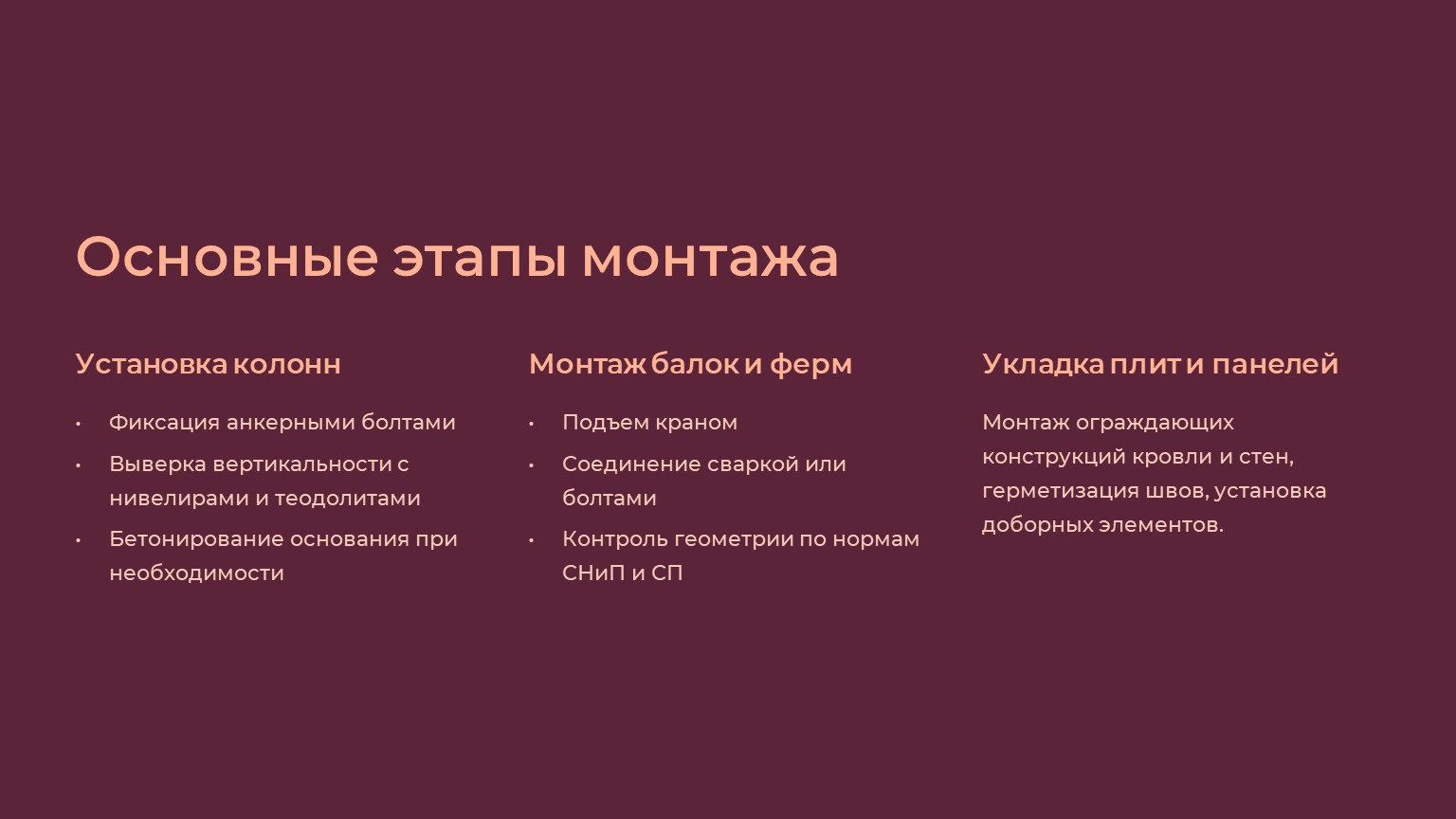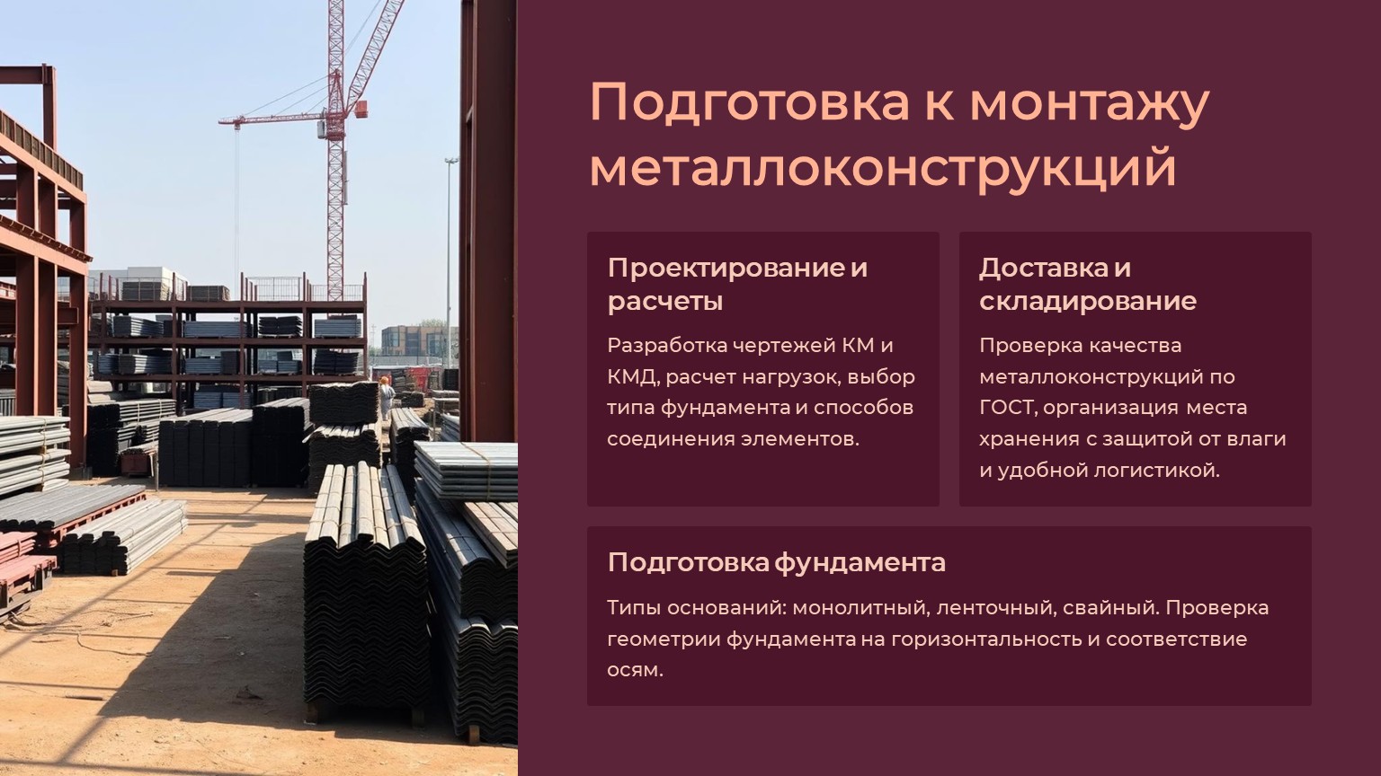 Монтаж металлоконструкций – ответственный процесс, от которого зависит прочность и долговечность здания. В этой статье мы подробно разберем все этапы: от подготовки фундамента до сдачи объекта в эксплуатацию.