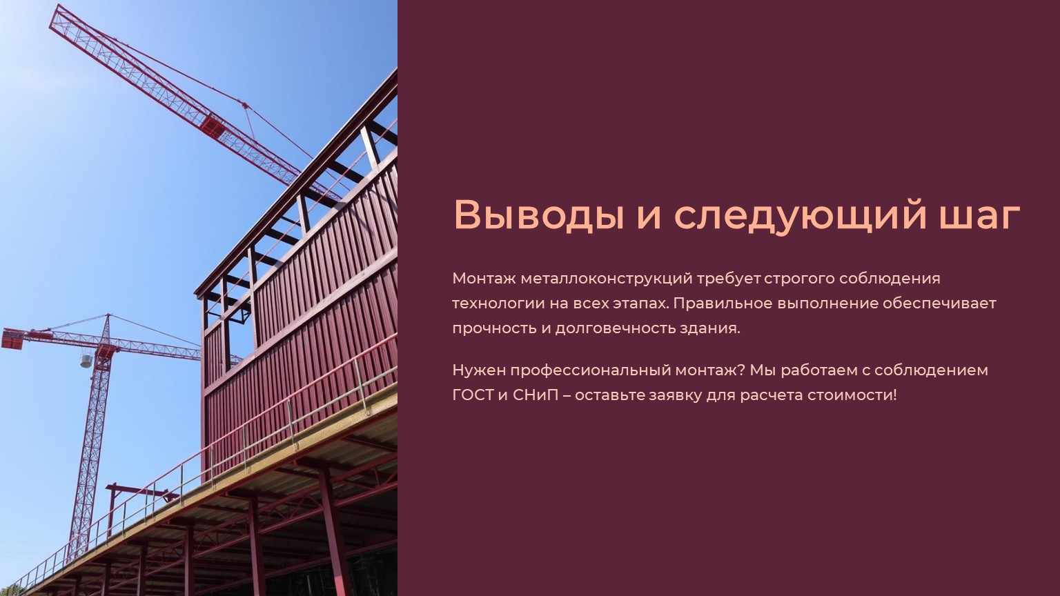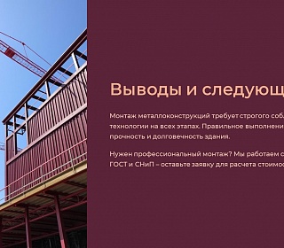 Монтаж металлоконструкций требует строгого соблюдения технологии. Если все этапы выполнены правильно, здание получится прочным и долговечным.