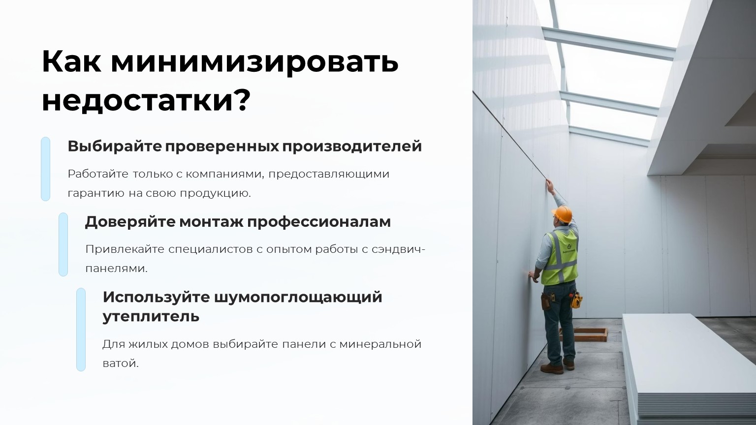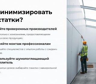 · Доверяйте монтаж профессионалам с опытом работы с сэндвич-панелями.