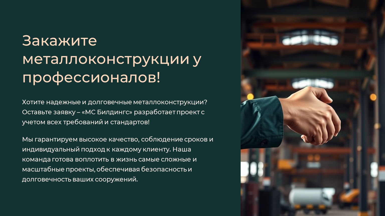Хотите надежные и долговечные металлоконструкции? Оставьте заявку – «МС Билдингс» разработает проект с учетом всех требований и стандартов!