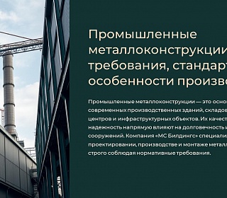 Компания «МС Билдингс» специализируется на проектировании, производстве и монтаже металлоконструкций, строго соблюдая нормативные требования. В этой статье мы рассмотрим ключевые стандарты, особенности изготовления и монтажа, а также преимущества сотрудничества с нашей компанией.