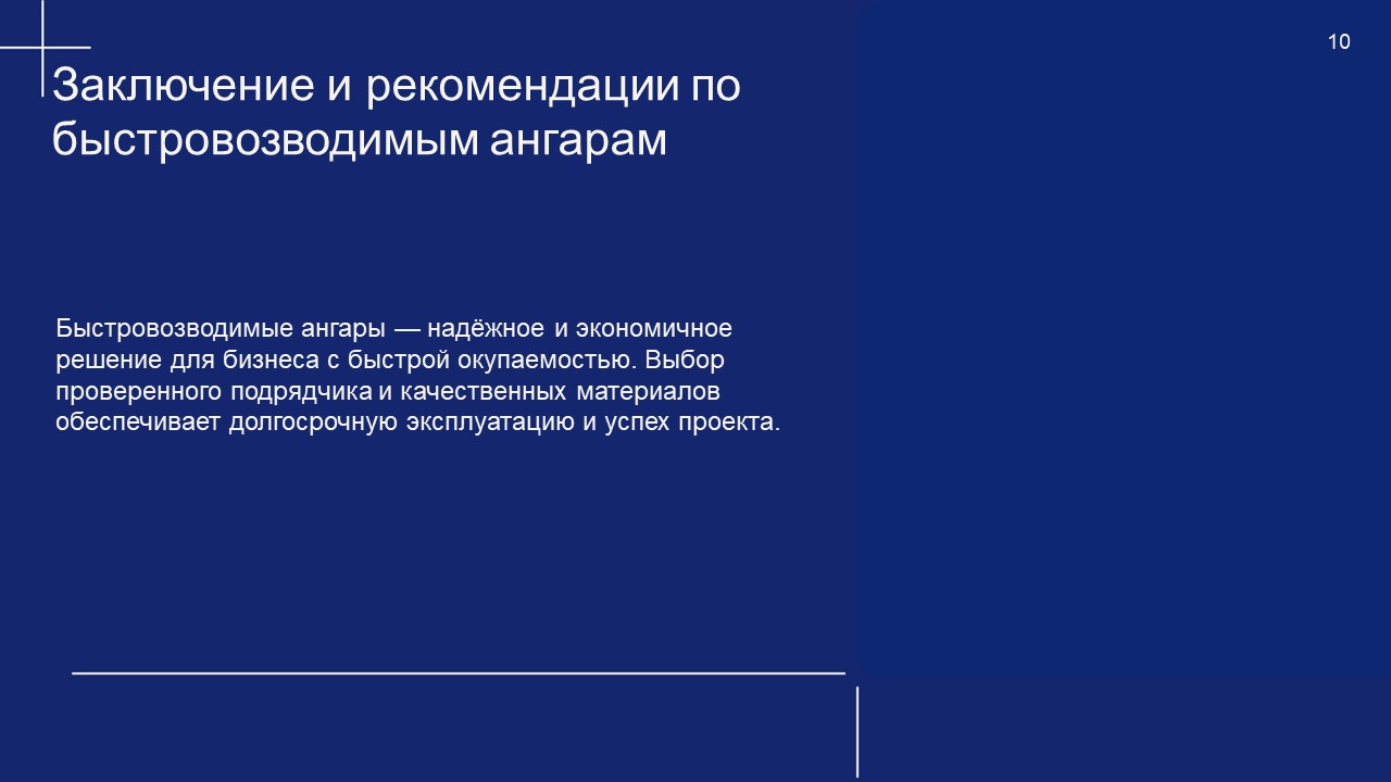 Быстровозводимые ангары — это надёжное, экономичное и практичное решение для бизнеса. Главное — выбрать проверенного подрядчика и качественные материалы, чтобы избежать проблем в эксплуатации.