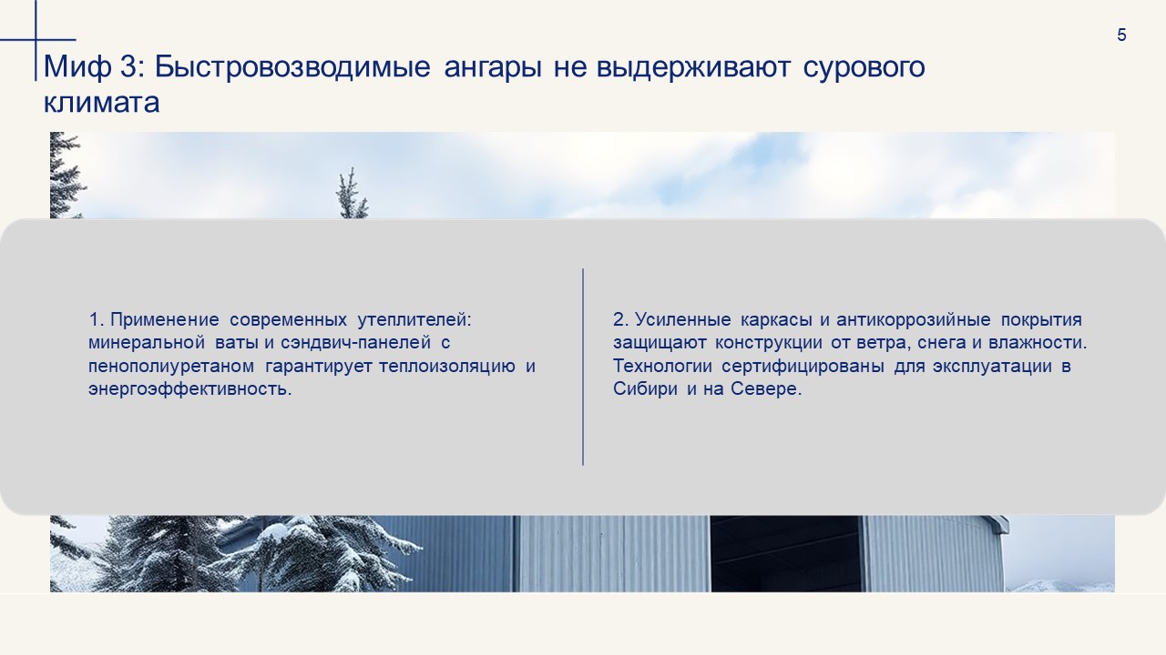 ✅ Реальность: Современные ангары адаптированы под разные климатические условия: