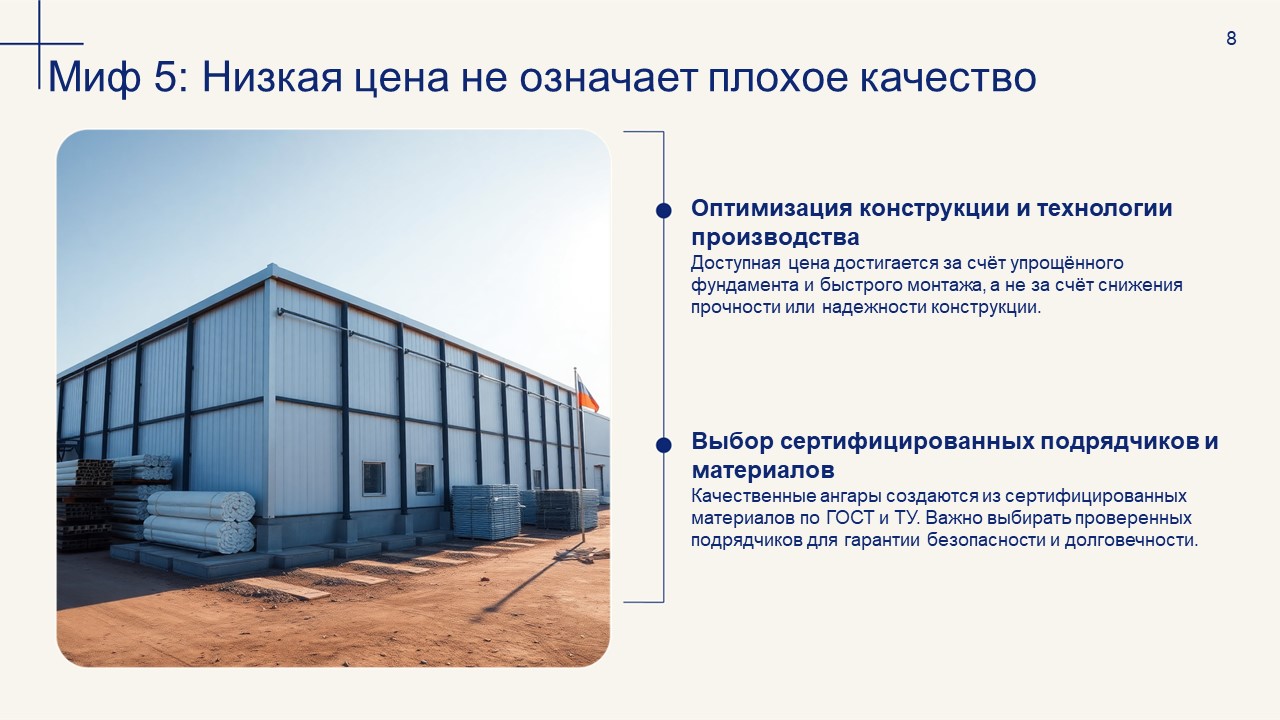 5. Миф: Дешёвые ангары — значит некачественные