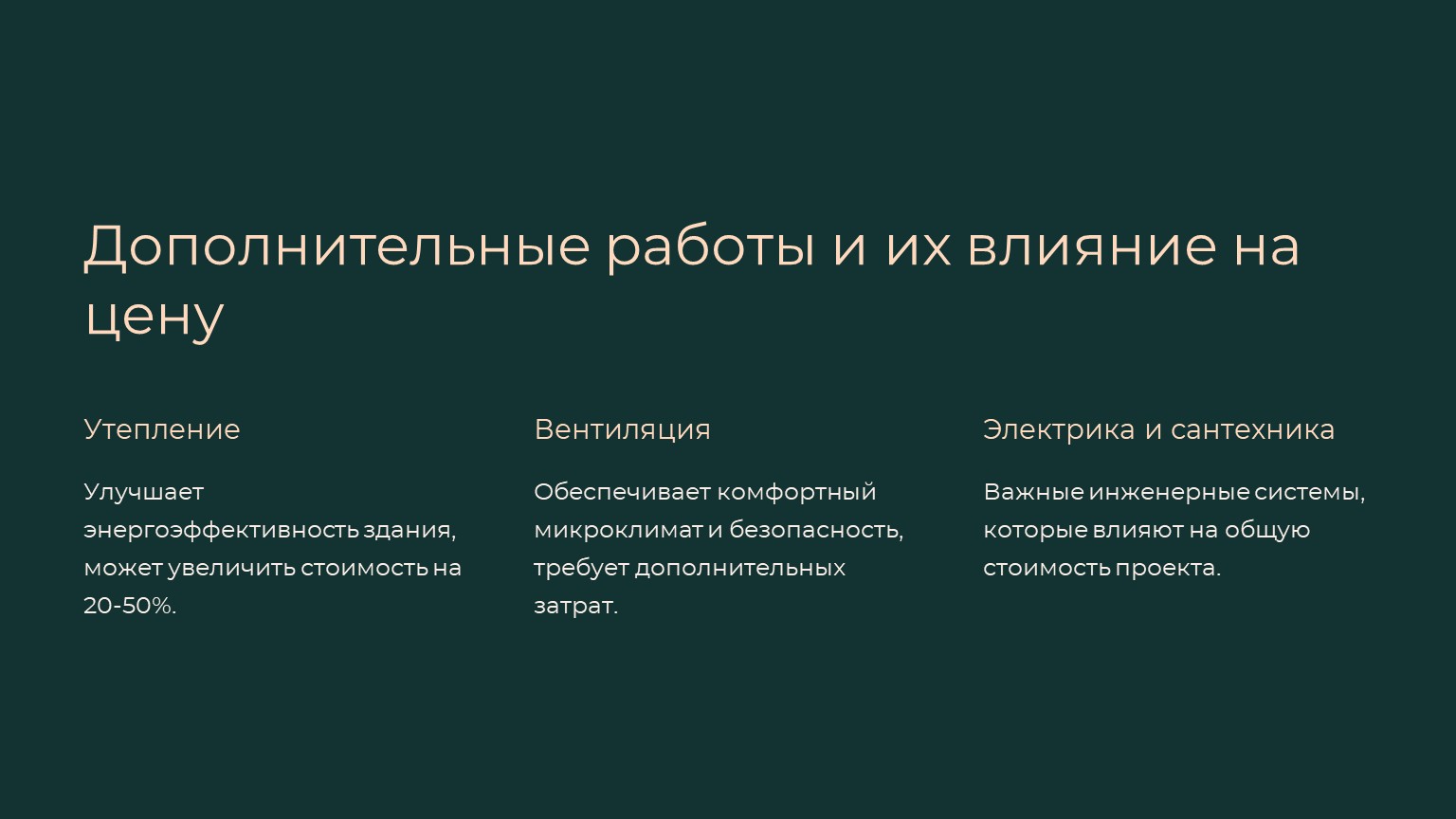 · Утепление, вентиляция, электрика, сантехника – могут увеличить стоимость на 20-50%.