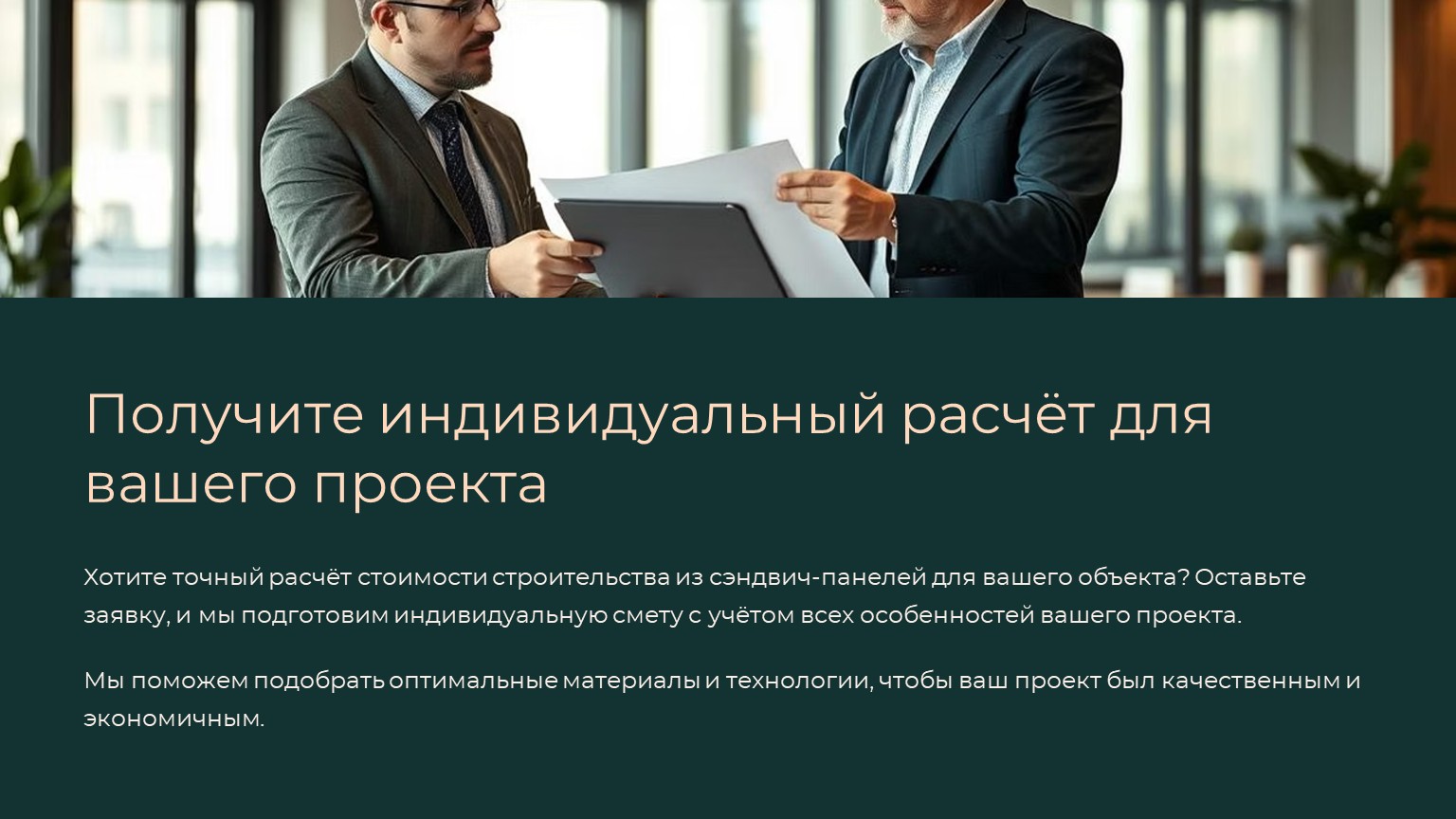 Хотите точный расчёт для вашего проекта? Оставьте заявку, и мы подготовим для вас индивидуальную смету!
