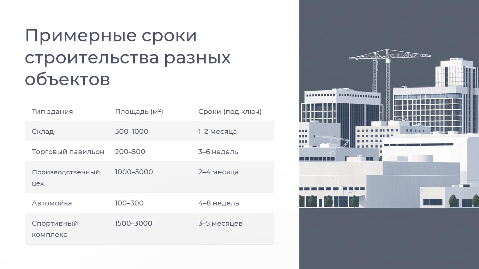 Примерные сроки строительства разных объектов