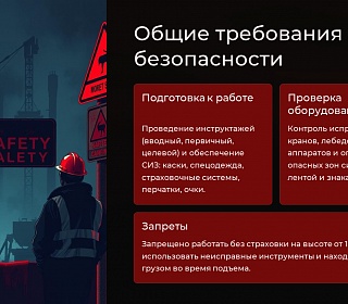 ✔ Четкая сигнализация между крановщиком и стропальщиком (жесты, рации).
