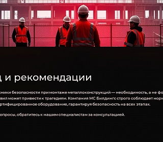 Соблюдение техники безопасности при монтаже металлоконструкций – не просто формальность, а необходимость. Нарушение правил может привести к трагедии. Компания МС Билдингс строго соблюдает все нормы ОТ и использует только сертифицированное оборудование, гарантируя безопасность на всех этапах строительства.