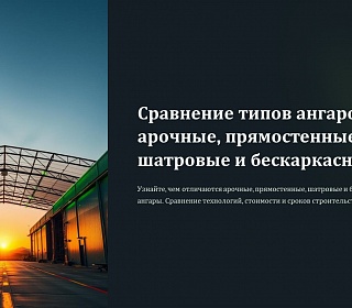Узнайте, чем отличаются арочные, прямостенные, шатровые и бескаркасные ангары. Сравнение технологий, стоимости и сроков строительства.