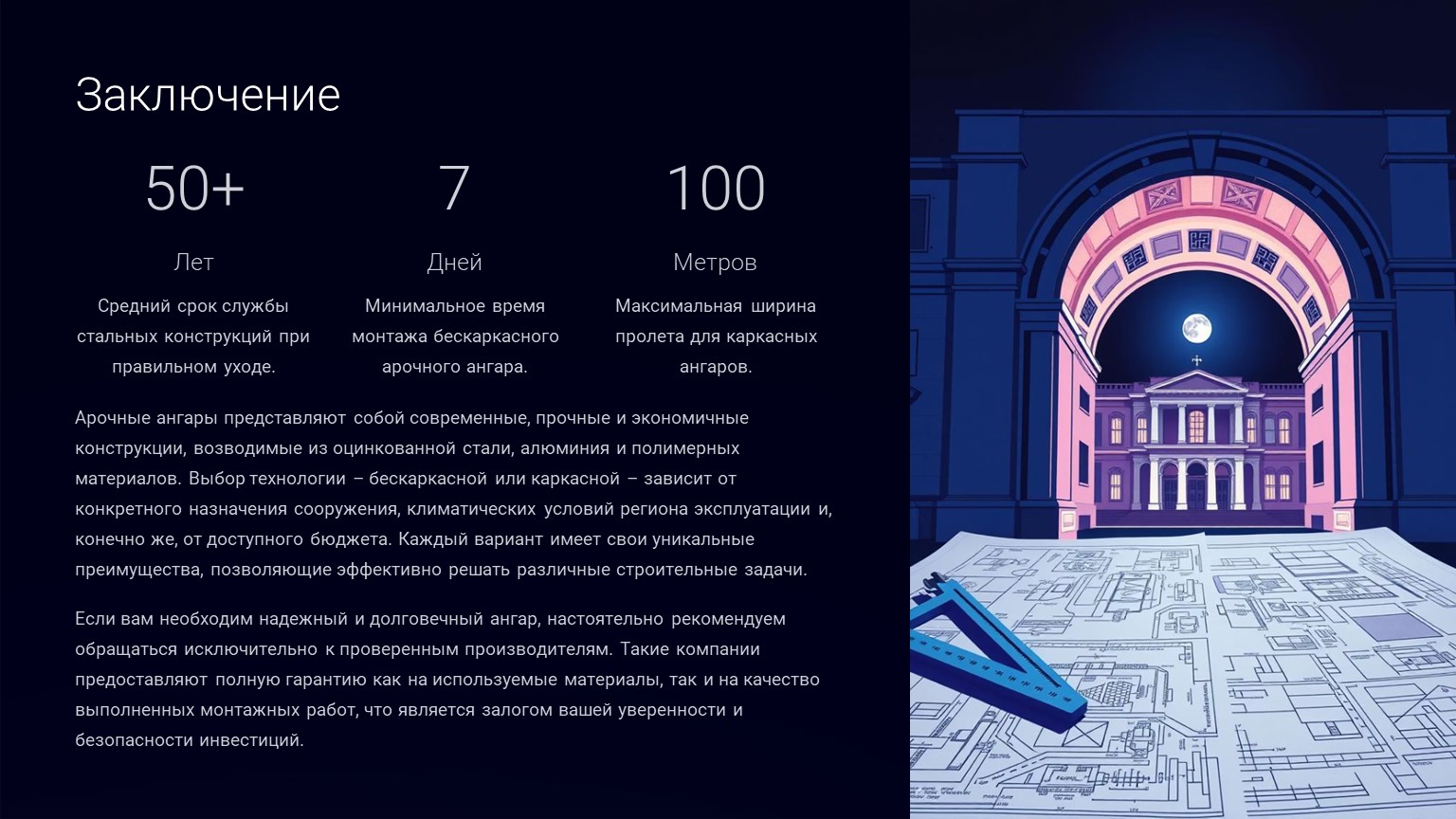 Если вам нужен надёжный ангар, обращайтесь к проверенным производителям, которые предоставляют гарантию на материалы и монтаж!