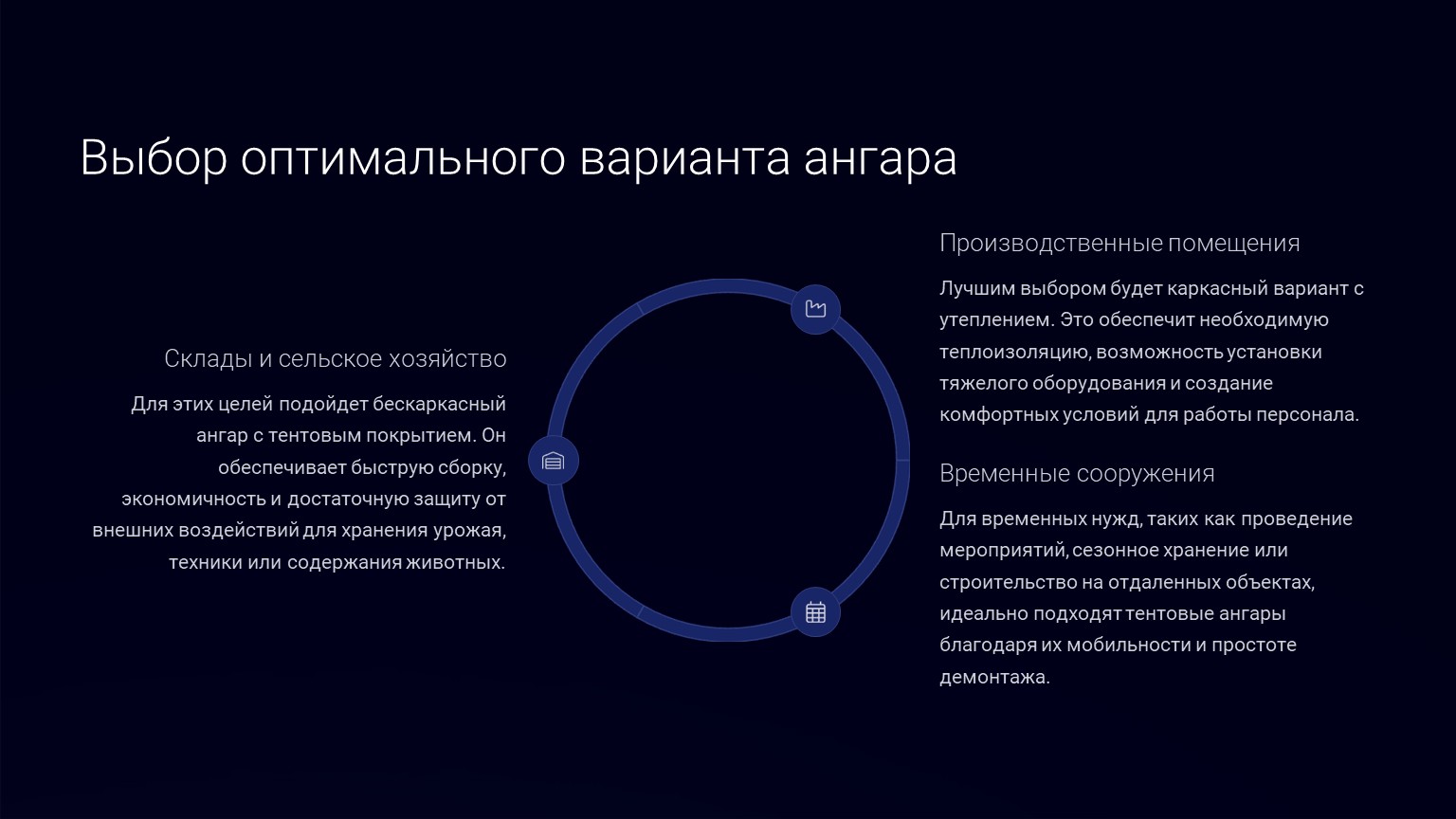 - Для складов и сельского хозяйства подойдёт ангар с тентовым покрытием.