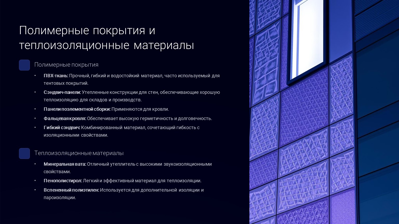 - Сэндвич-панелями (стены) – утеплённые конструкции для складов и производств.