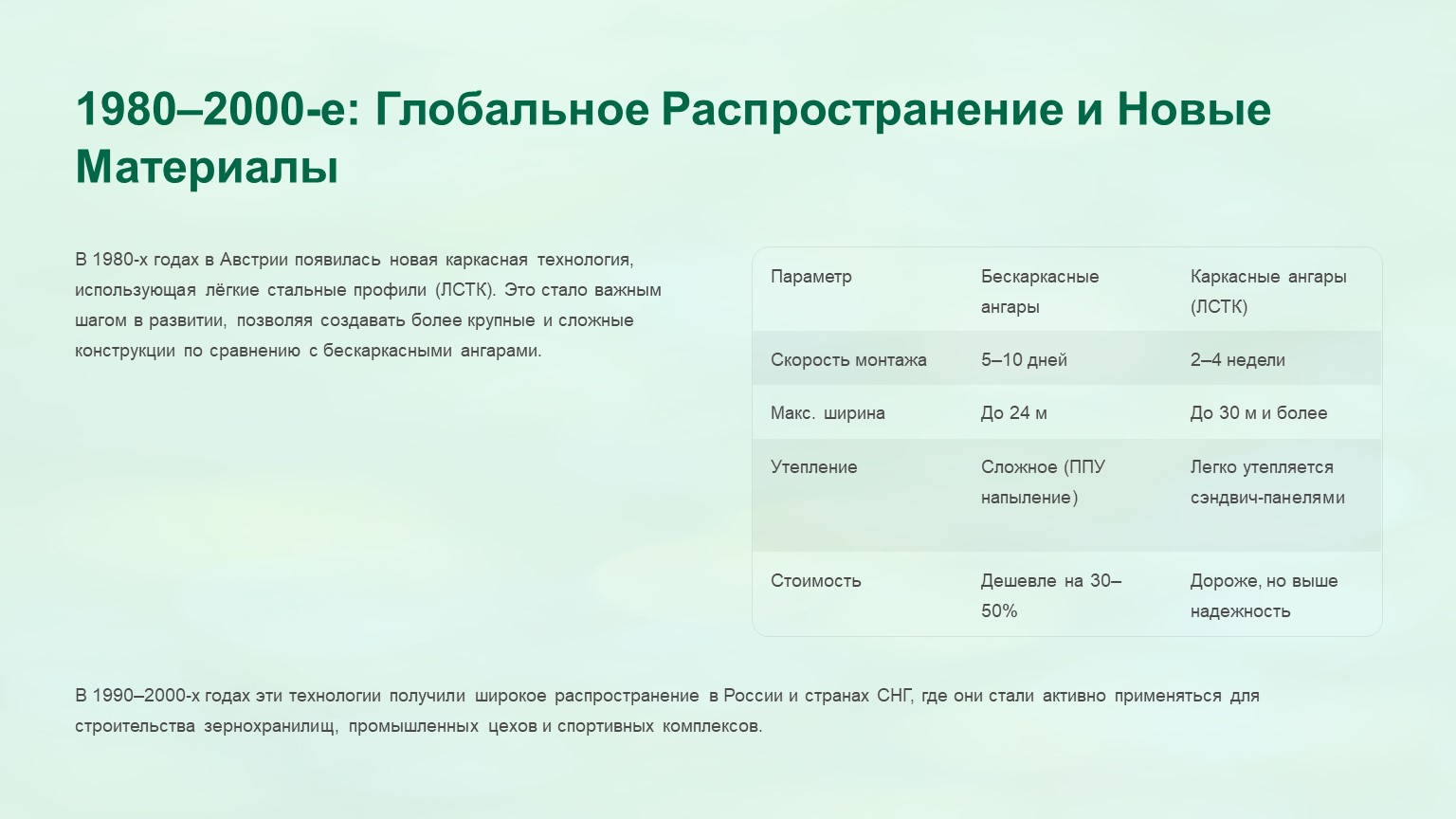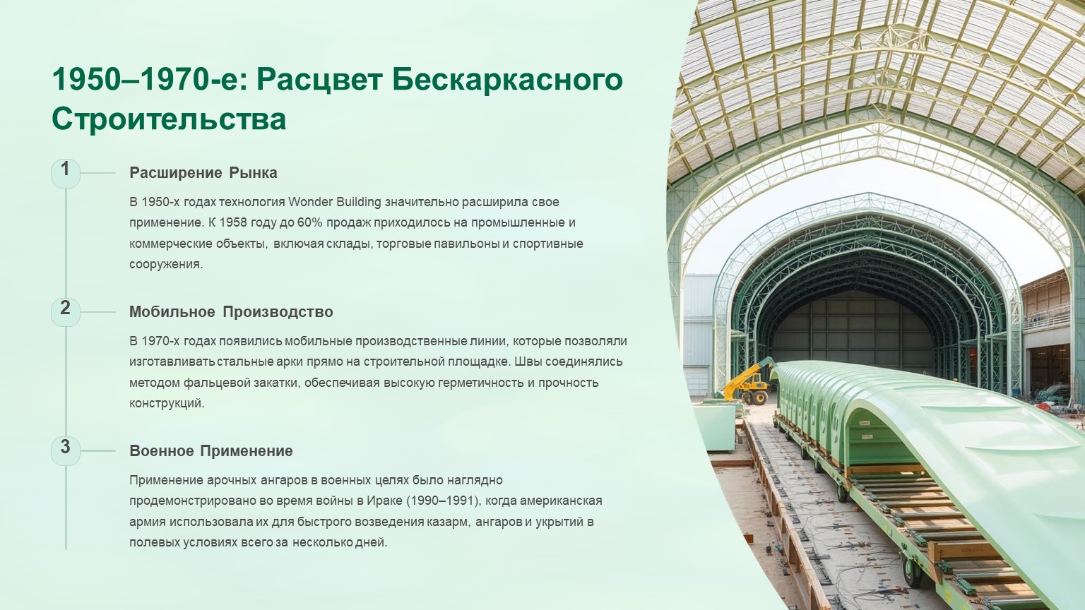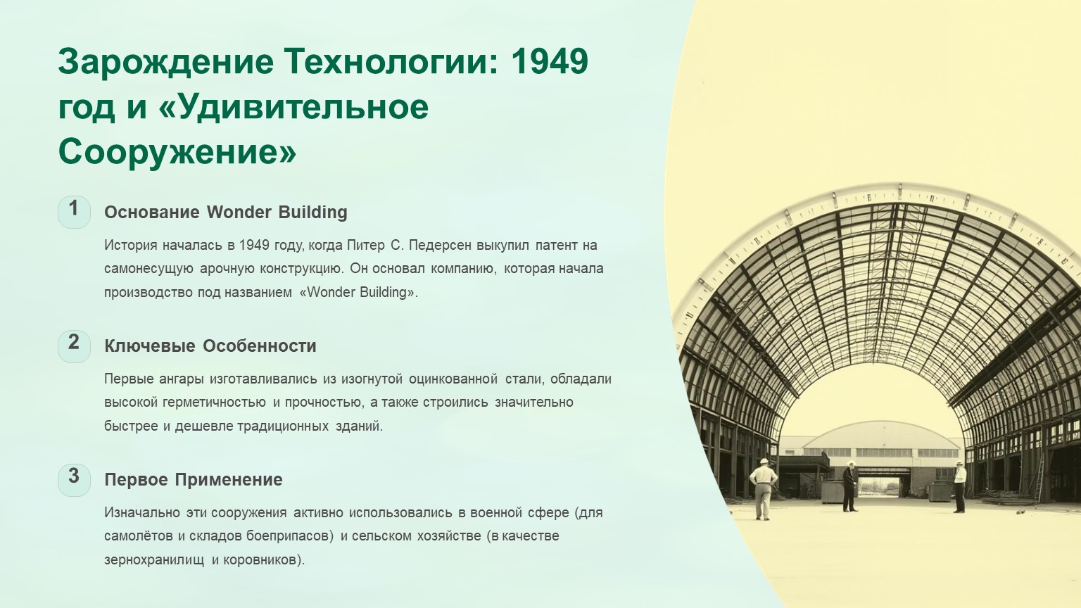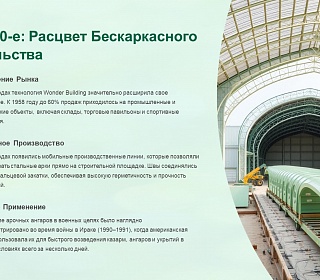 Узнайте, как развивались арочные ангары — от первых бескаркасных конструкций 1949 года до современных решений. Полная история технологии.