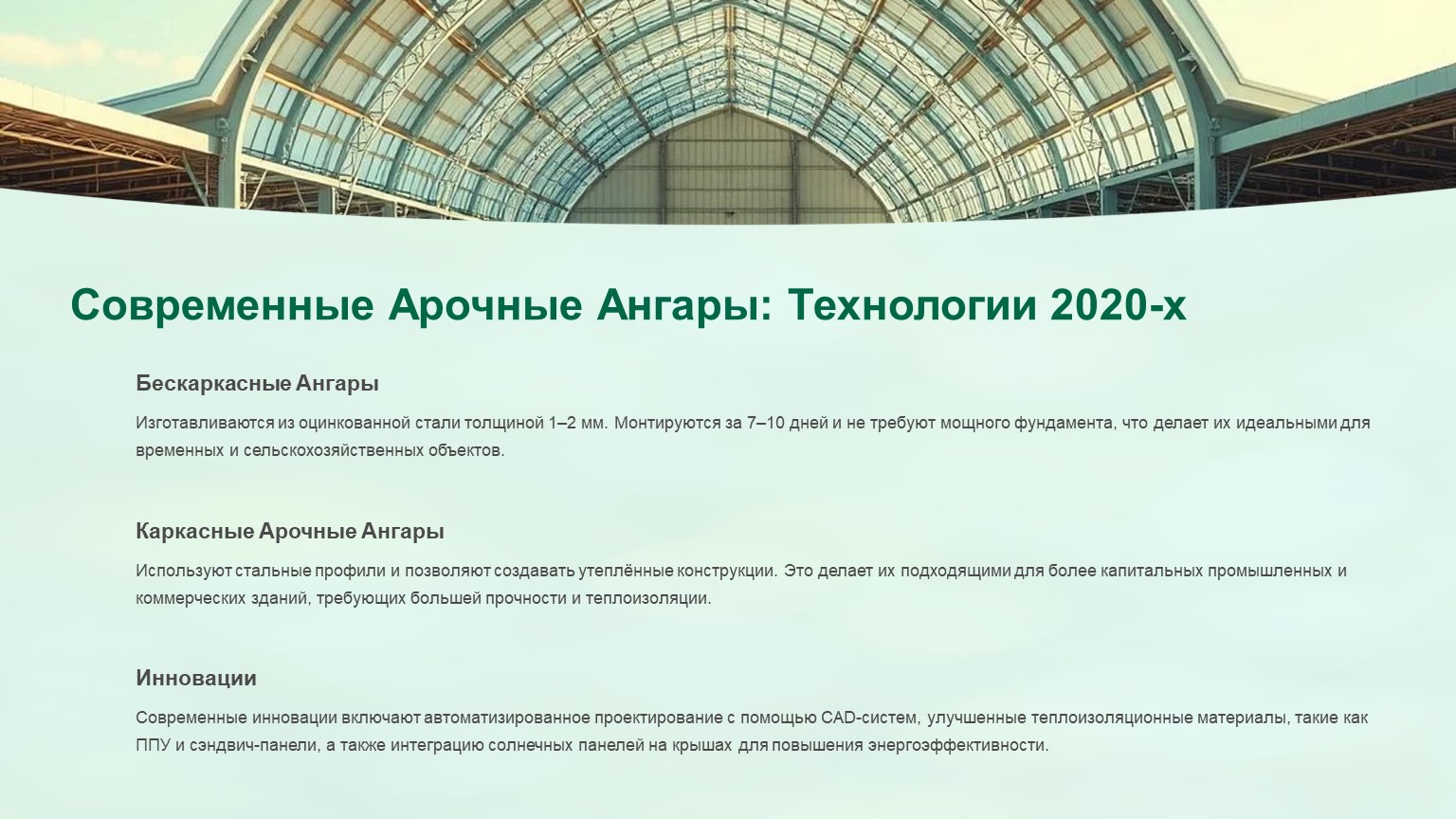 4. Современные арочные ангары: технологии 2020-х