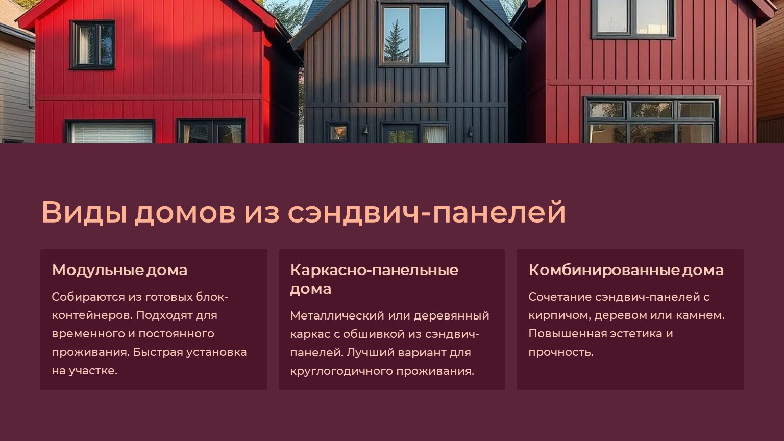 Виды домов из сэндвич-панелей