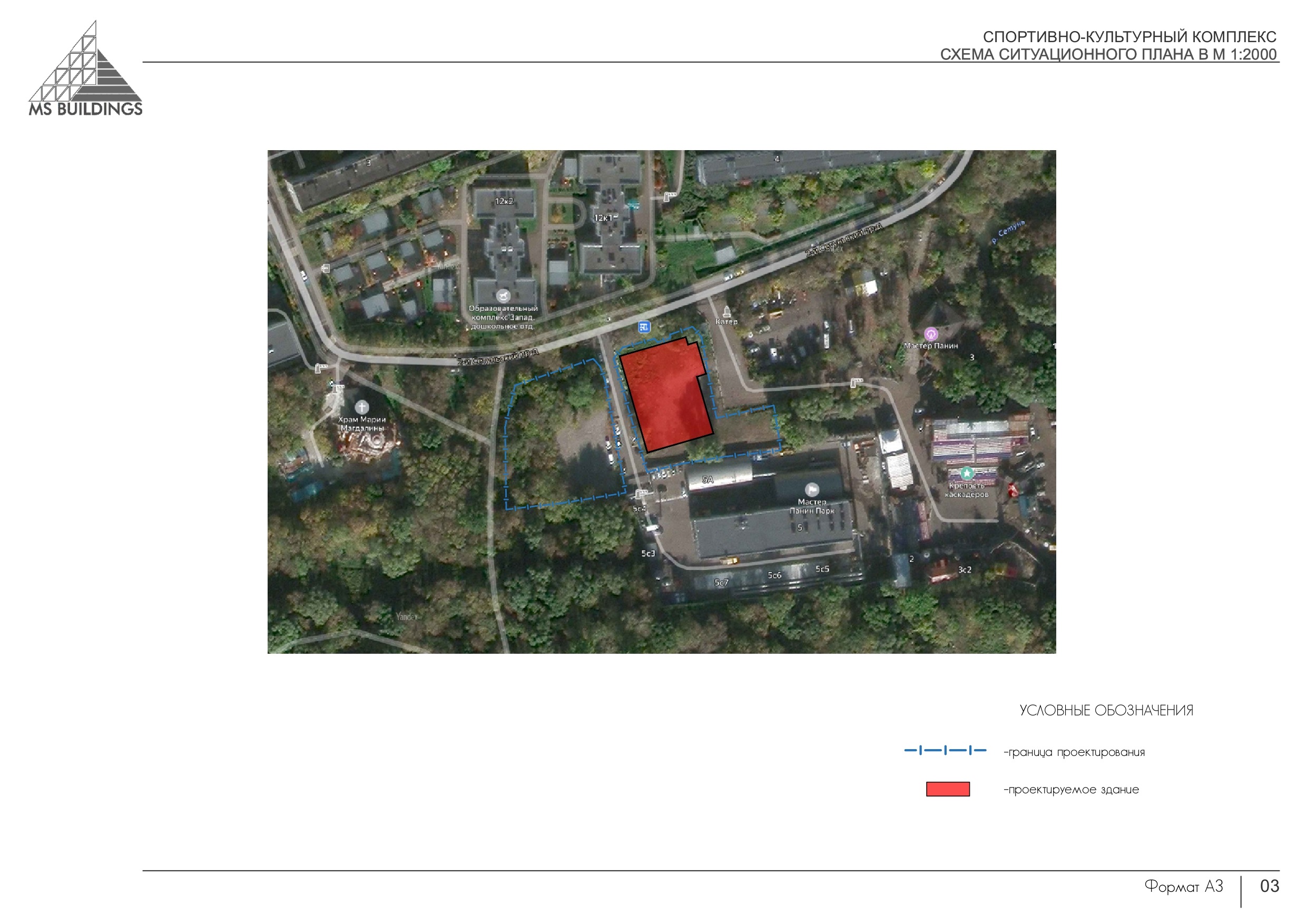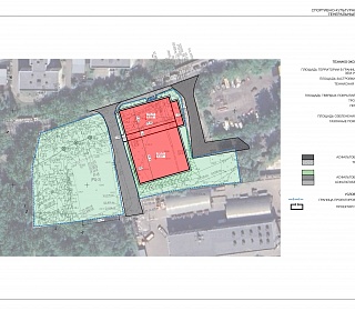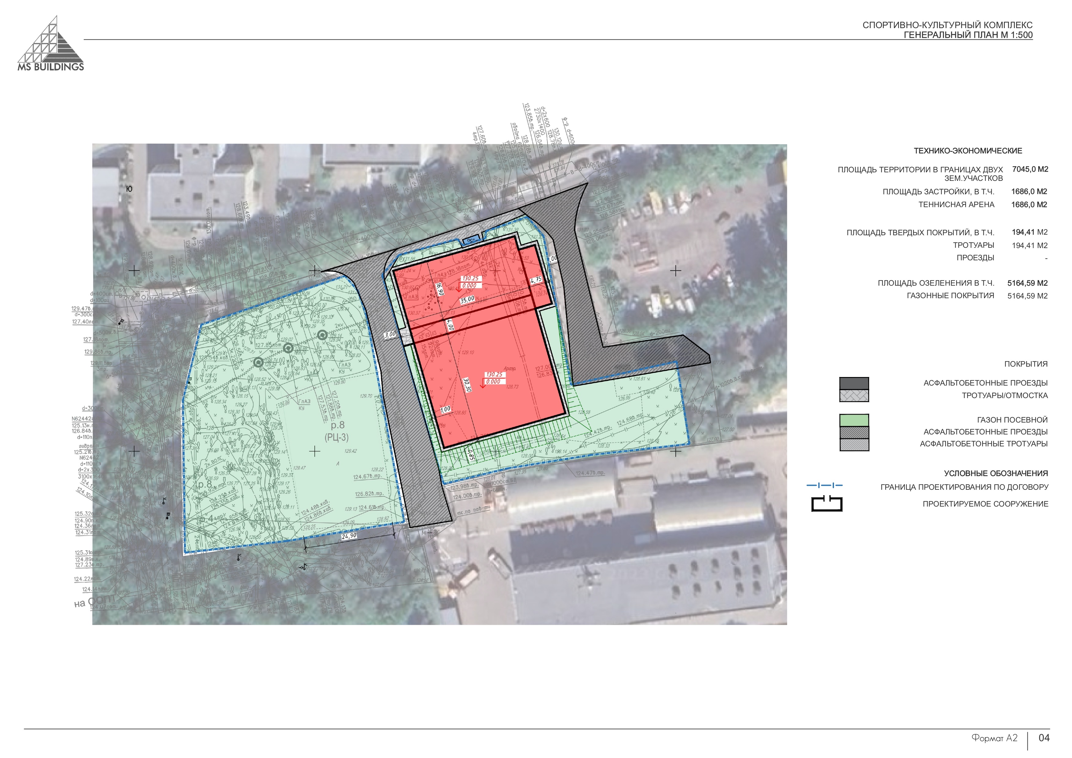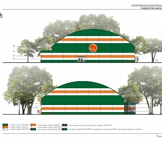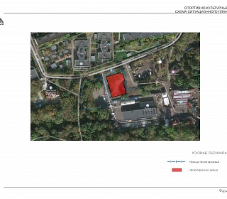 Концепция разработана на установку не капитального спортивного объекта. Место для физкультурно-оздоровительного комплекса располагается на свободном от застройки участке, с умеренным уклоном с отметками от 31.39-128.58