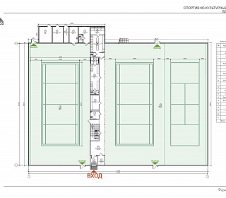 - теннисный манеж размерами 35,03х51,3м (сборно-разборного типа конструкций), с двумя полями для тенниса размерами 10,97х23,77м и одним полем 8,23х23,77. Высота здания- 14,10м.