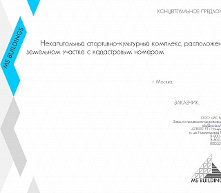 Компания МС Билдингс завершила работы по подготовки необходимого пакета проектной документации для свозведения некапитального спортивного объекта «Некапитальный спортивно-культурный комплекс» в г. Москва.