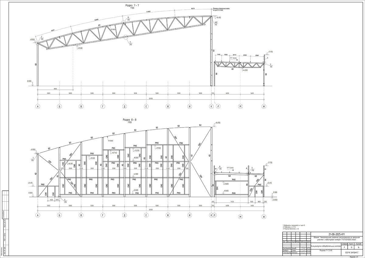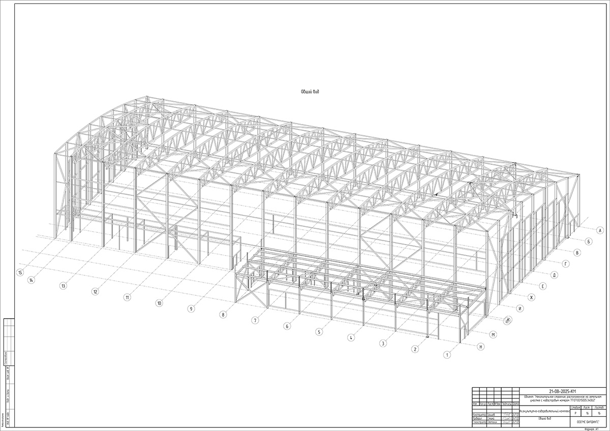 · Конструкция: каркас из гнутозамкнутого профиля с шарнирным сопряжением балок и жёстким защемлением колонн в фундамент