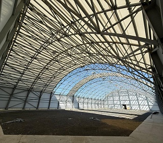 o Ограждающие конструкции кровли: полной заводской готовности, изготавливаются согласно разработанном нашей компанией ТУ 23.99.19-002-45384498-2021 «Панели тентовые трехслойные с базальтовым утеплителем» (сертификат соответствия №04ИДЮ 13.RU.C00470) и могут быть использованы в качестве ограждающих конструкций многих типов конструкций, от небольших тентовых зданий (пролетом от 10м) до крупномасштабных многопролетных зданий (пролетом от 60м. до 100м.).