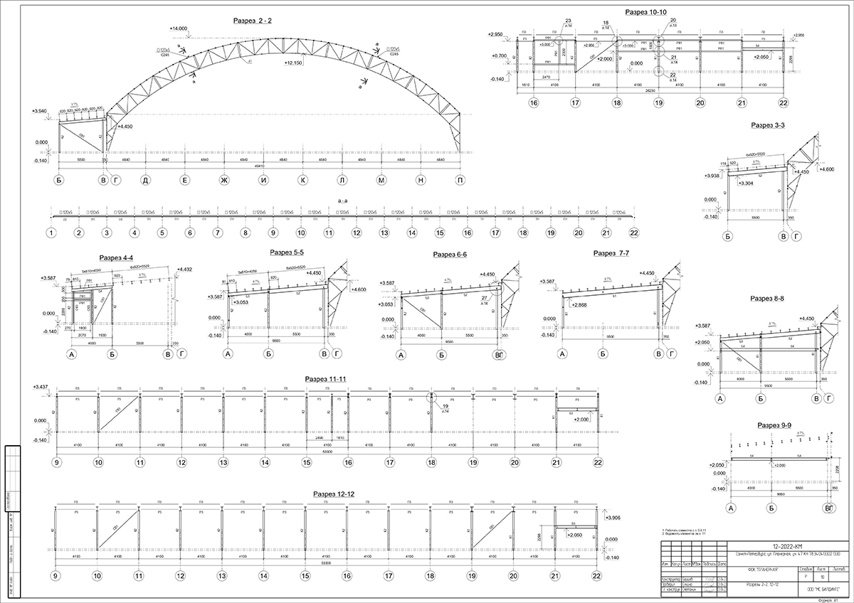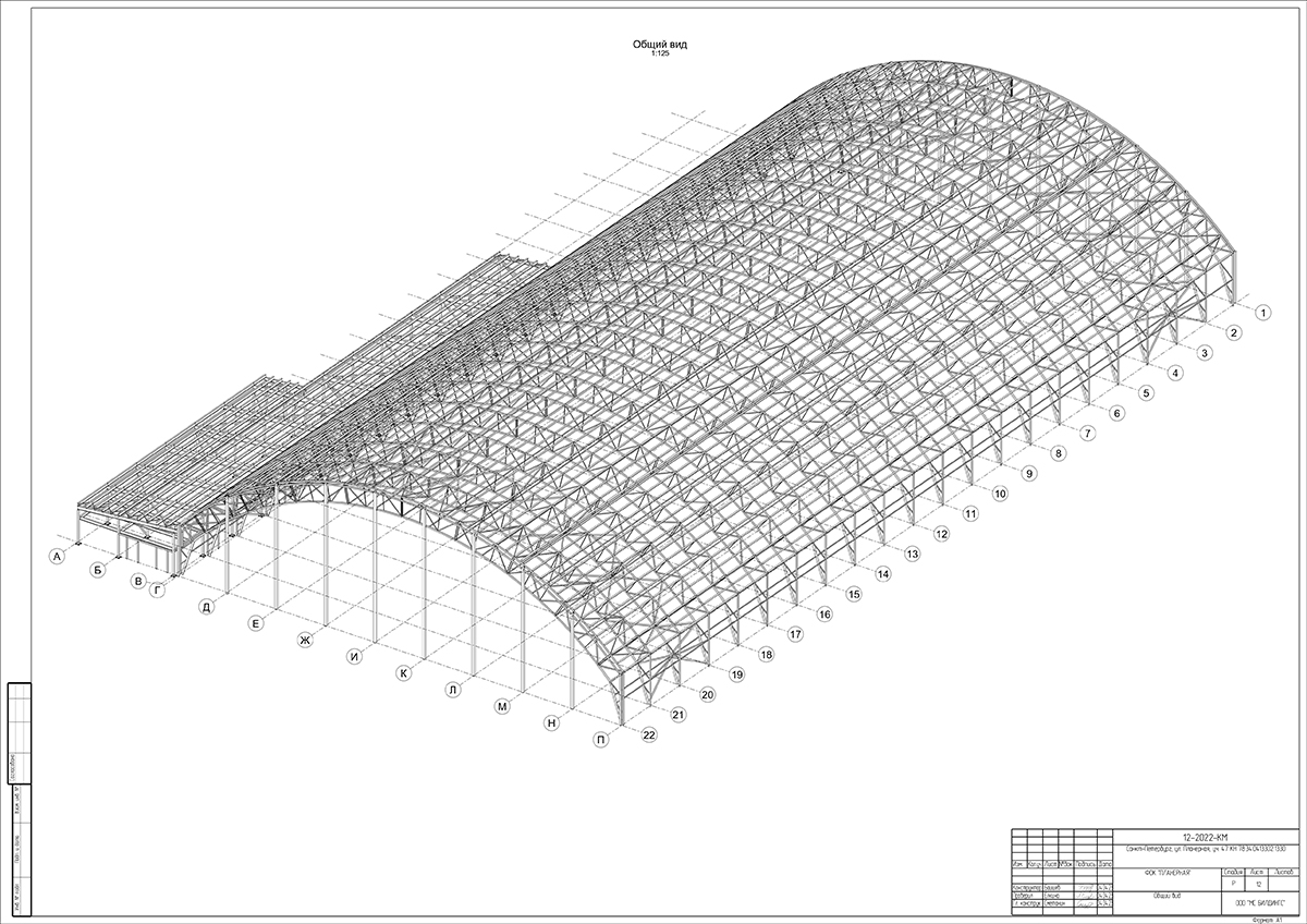 Разработка проекта стадии КМ футбольного манежа пролетом 43м