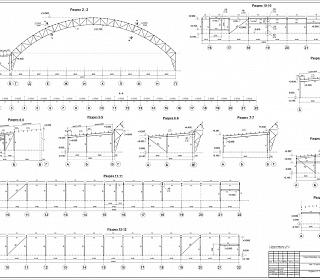 Арки конструкции запроектированны из стального гнутого замкнутого профиля квадратного сечения. Марка стали С345. Торцевые фахверковые колонны запроектированны из стального гнутого замкнутого профиля квадратного сечения. Связи и распорки запроектированны из стального гнутого замкнутого профиля квадратного сечения.