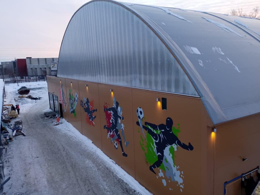 Завершение работ по монтажу комплекта модульного футбольного манежа в г. Челябинск