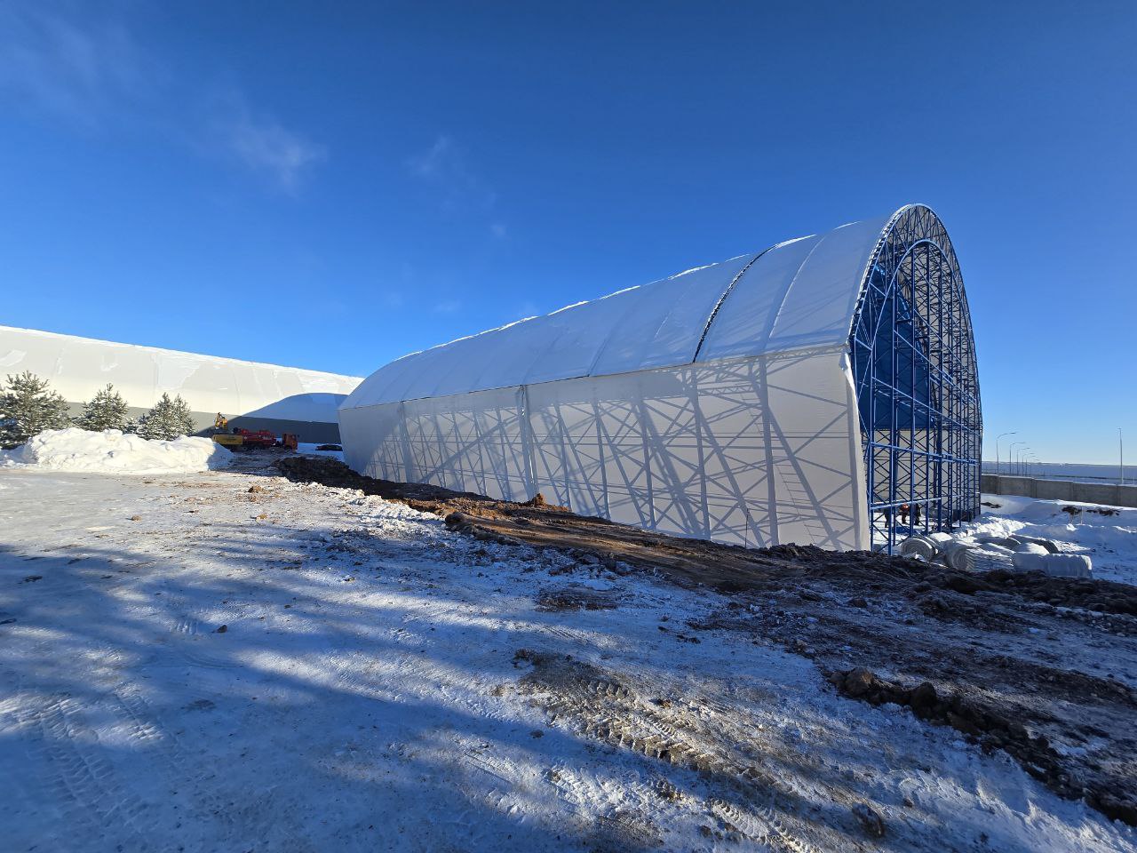 Монтаж каркаса, тентовой оболочки и инженерных систем «под ключ»: 48 дней
