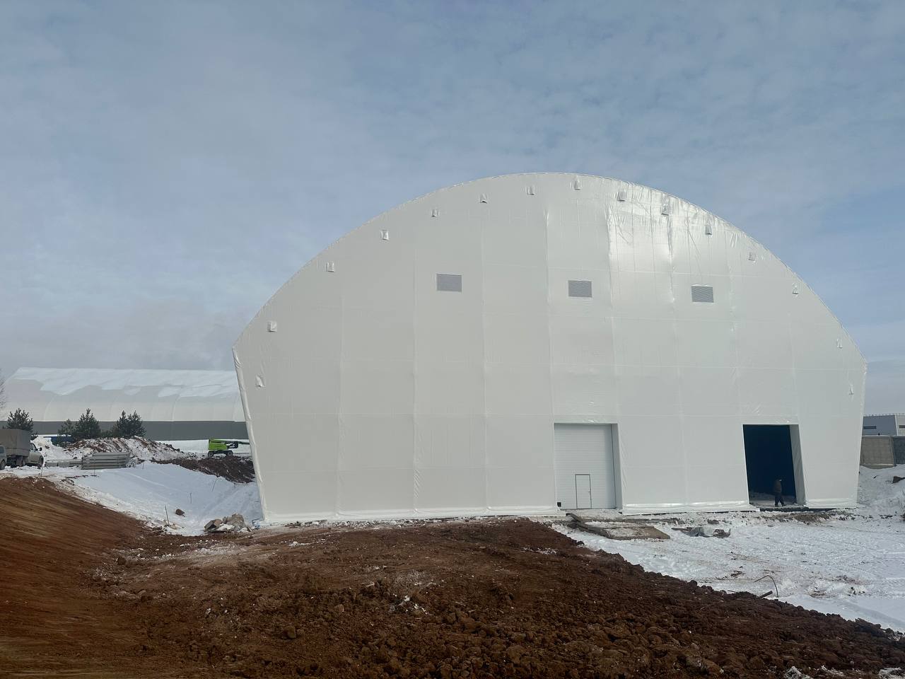 Внутренний слой: Второй контур из ПВХ-материала (плотность 650 г/м²), смонтированный по внутреннему поясу арки. Цвет – белый, что улучшает освещенность внутри помещения.