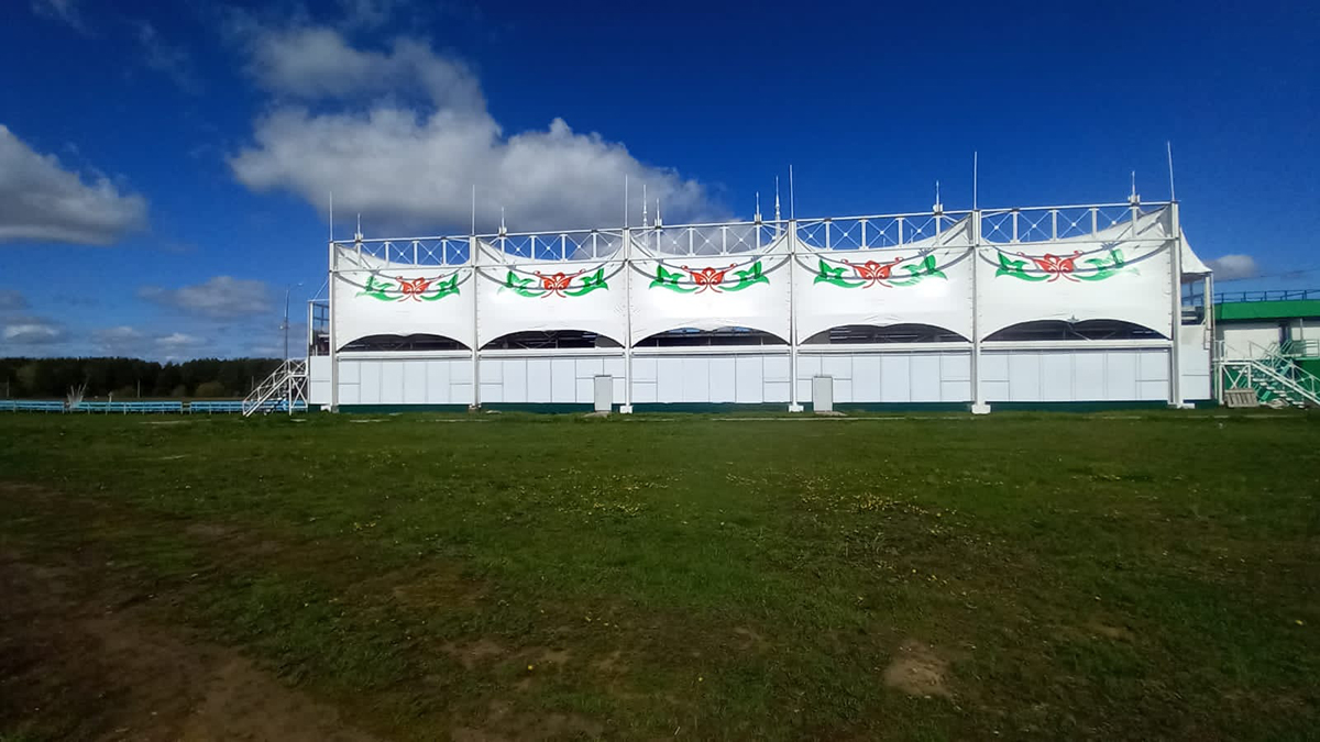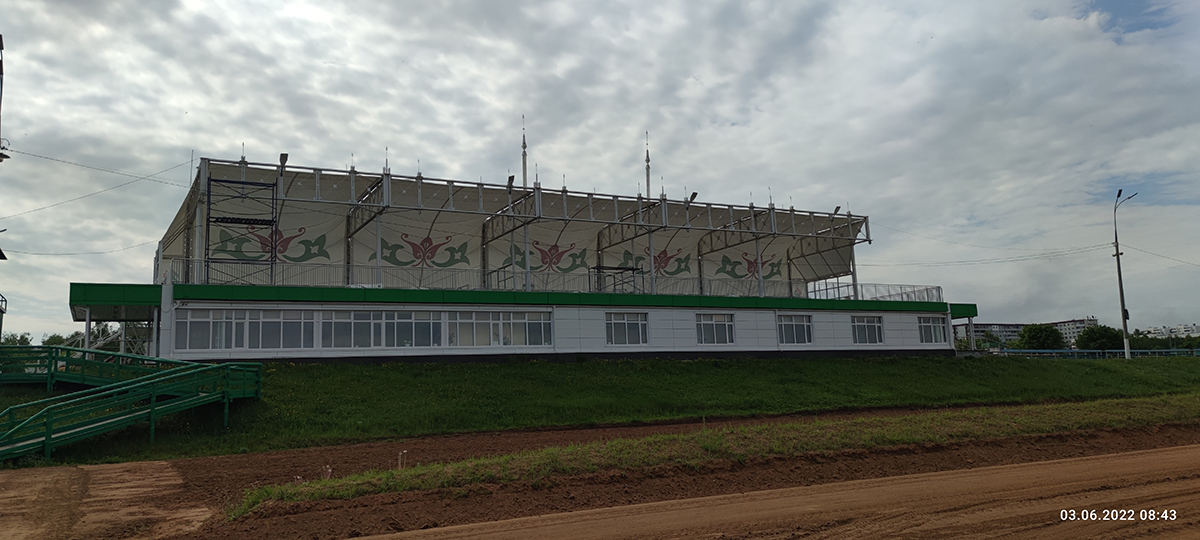 На городском ипподроме г. Набережные Челны компания МС Билдингс завершила работы по замене старого тентового покрытия на новое.