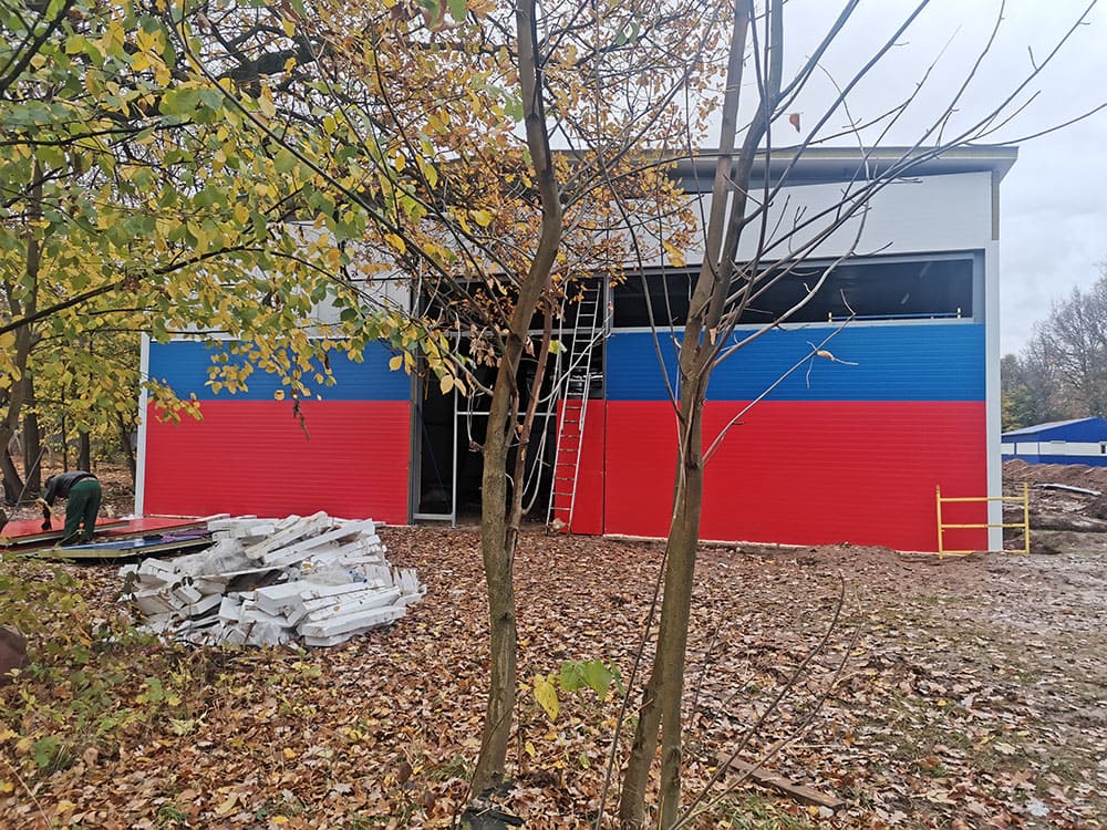 - Поставка и монтаж ограждающих контрукций стен из сэндвич-панелей 100мм.;