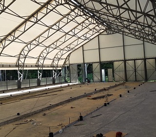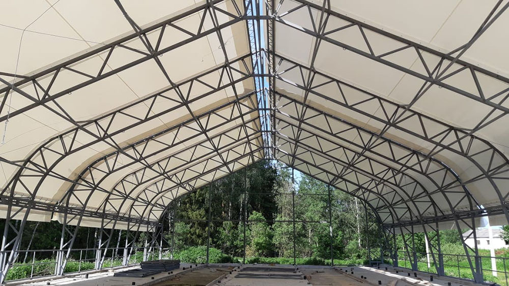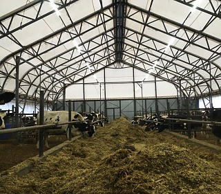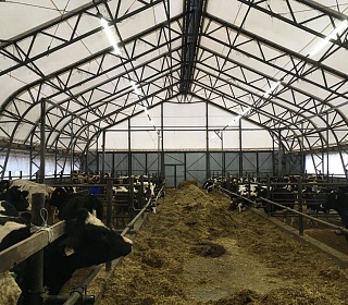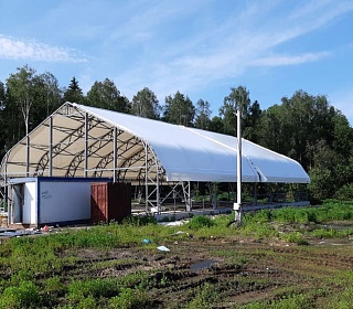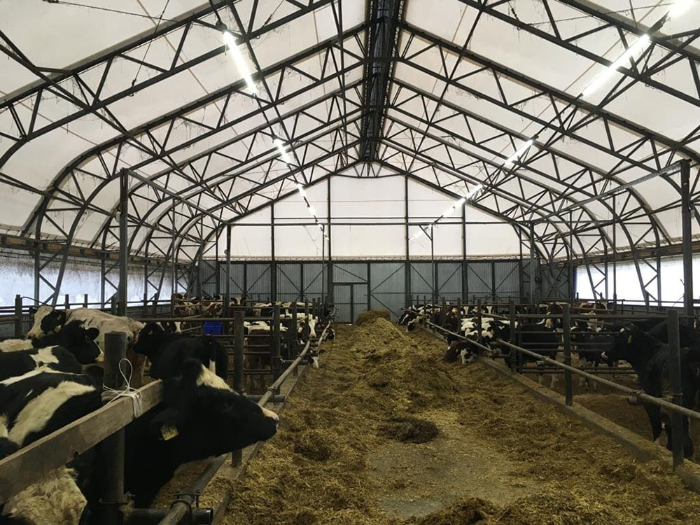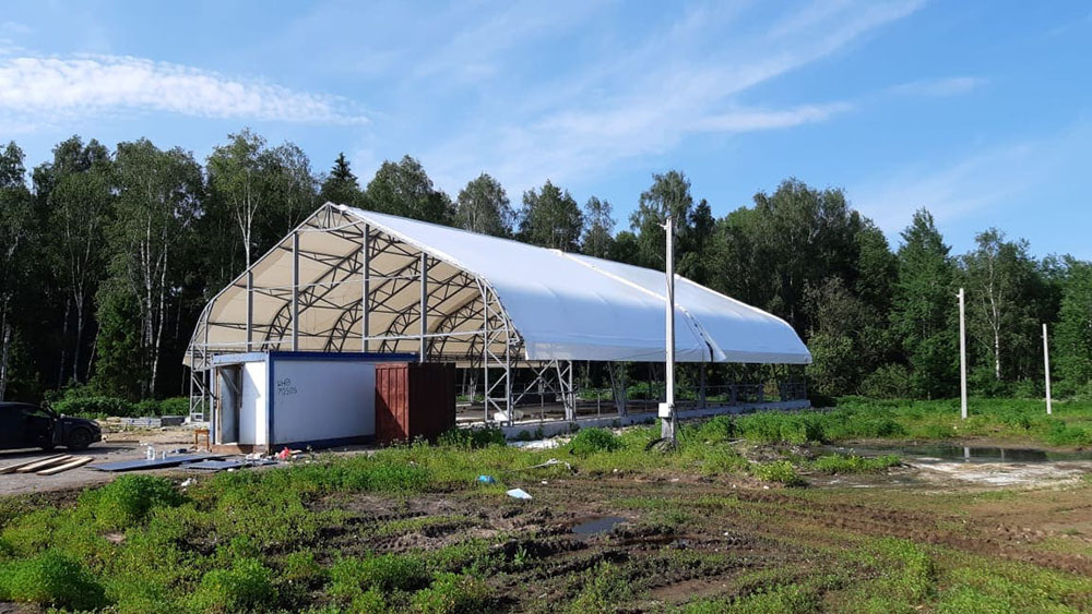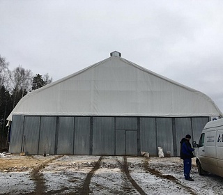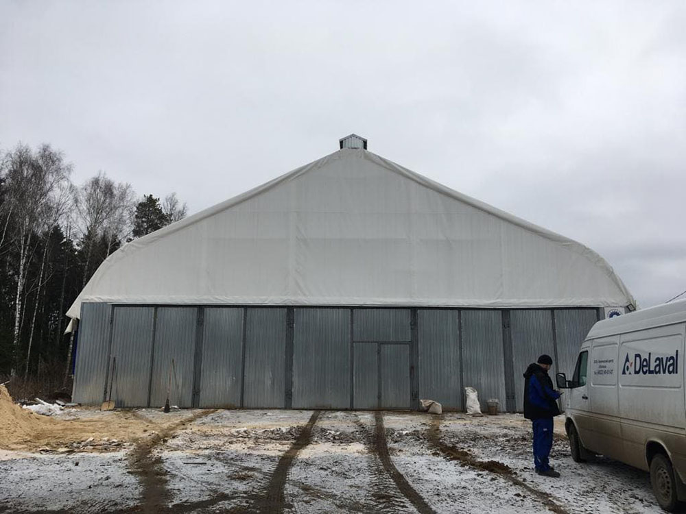 Заказчик: ООО "ТЦ ОПОЛЬЕ" Выполненные работы Изготовление, поставка и монтаж тентового здания для телятника размером 17х30х2,5м.